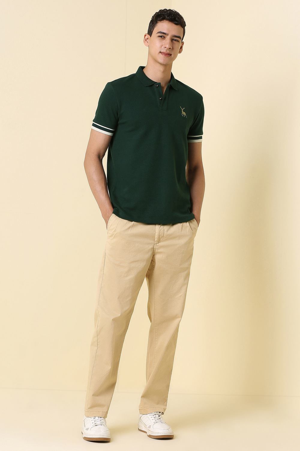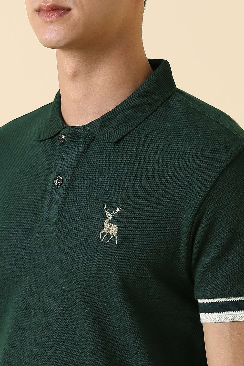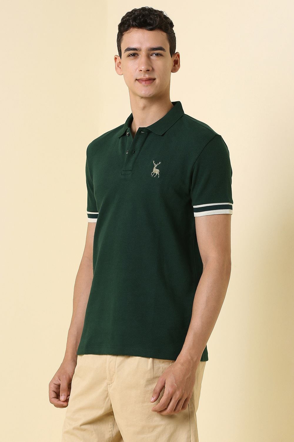 Introducing the Allen Solly Edition 1744 t-shirt in a refreshing green hue. Crafted from a blend of polyester and cotton, this casual polo neck tee ensures effortless comfort and style for everyday wear. Its solid pattern lends versatility, making it a perfect choice for various casual occasions. Elevate your wardrobe with this essential piece that balances sophistication and laid-back charm, allowing you to express your unique style effortlessly.