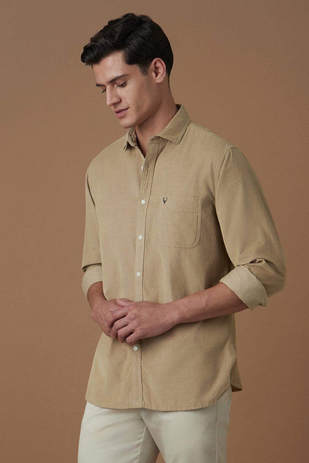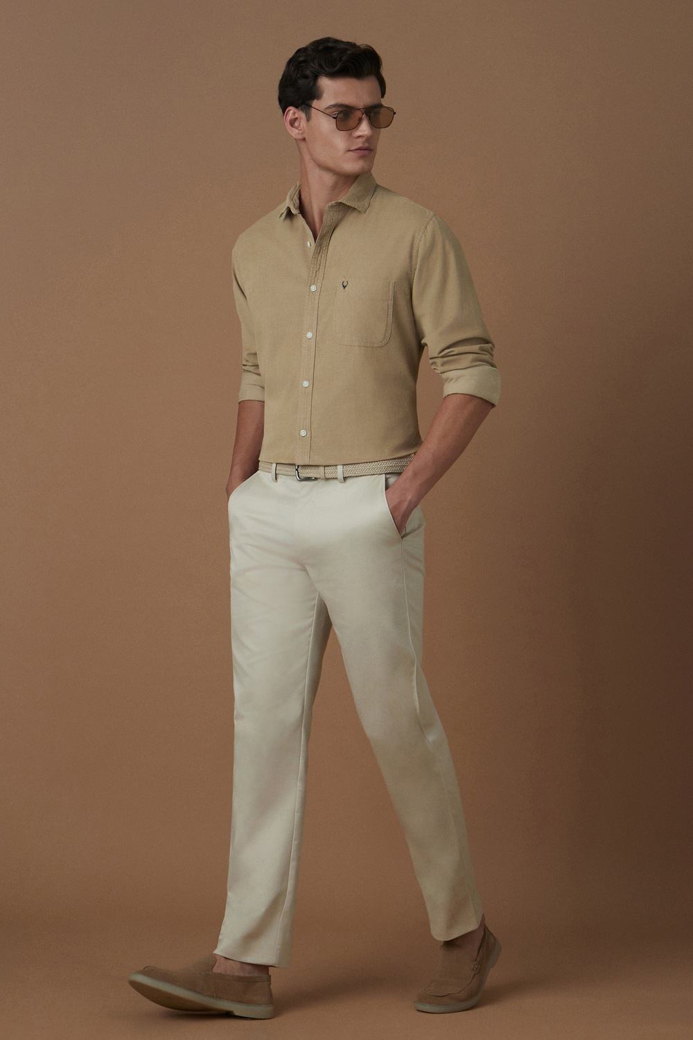 Experience effortless style with the Allen Solly khaki shirt, crafted from premium cotton for all-day comfort. This solid-patterned shirt is perfect for casual outings, offering a relaxed yet polished look. Its breathable fabric ensures you stay comfortable while embodying sophistication. Pair it effortlessly with your favorite bottoms for a versatile addition to your wardrobe. Embrace elegance with this timeless piece that speaks to both comfort and style.