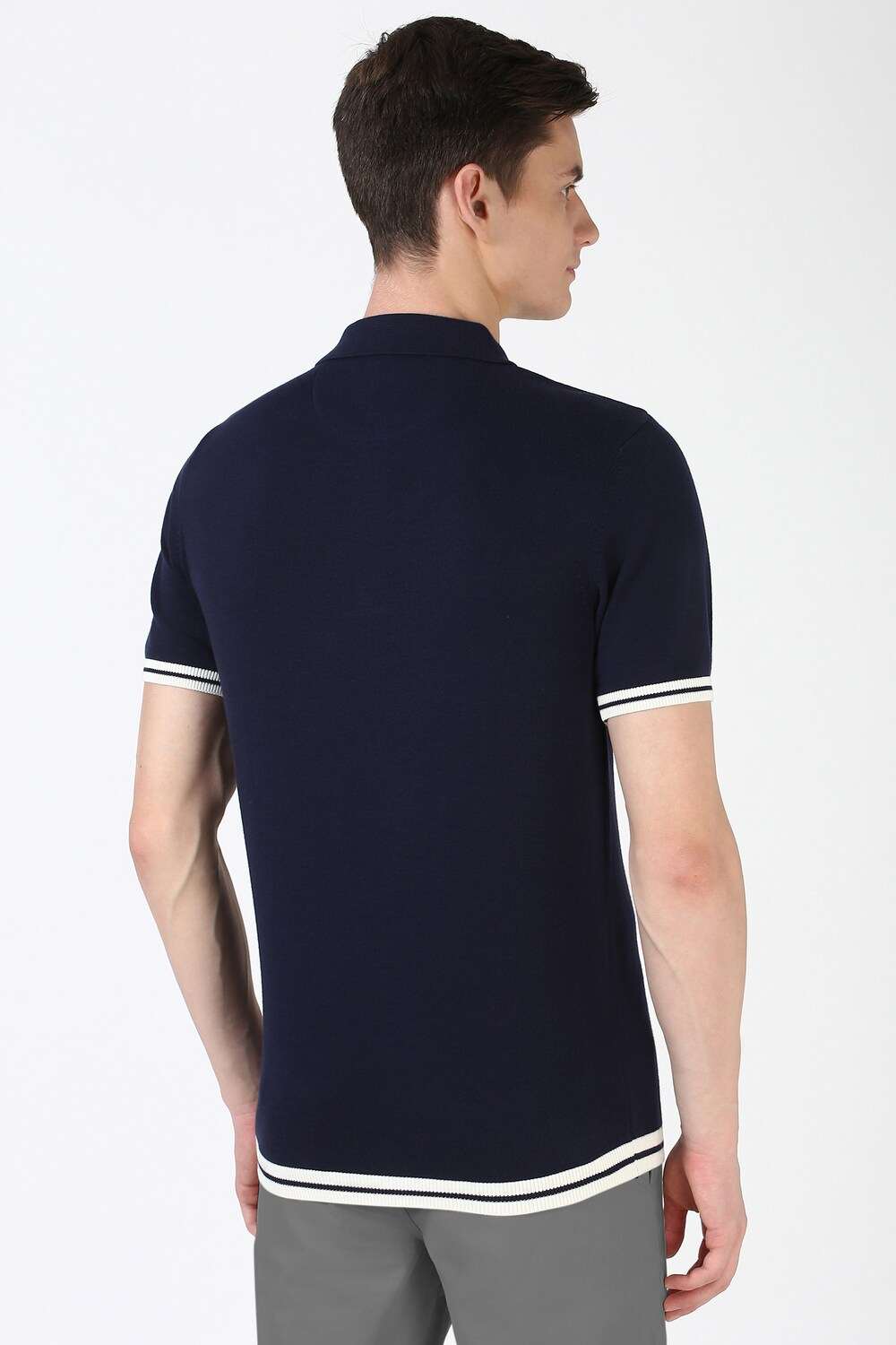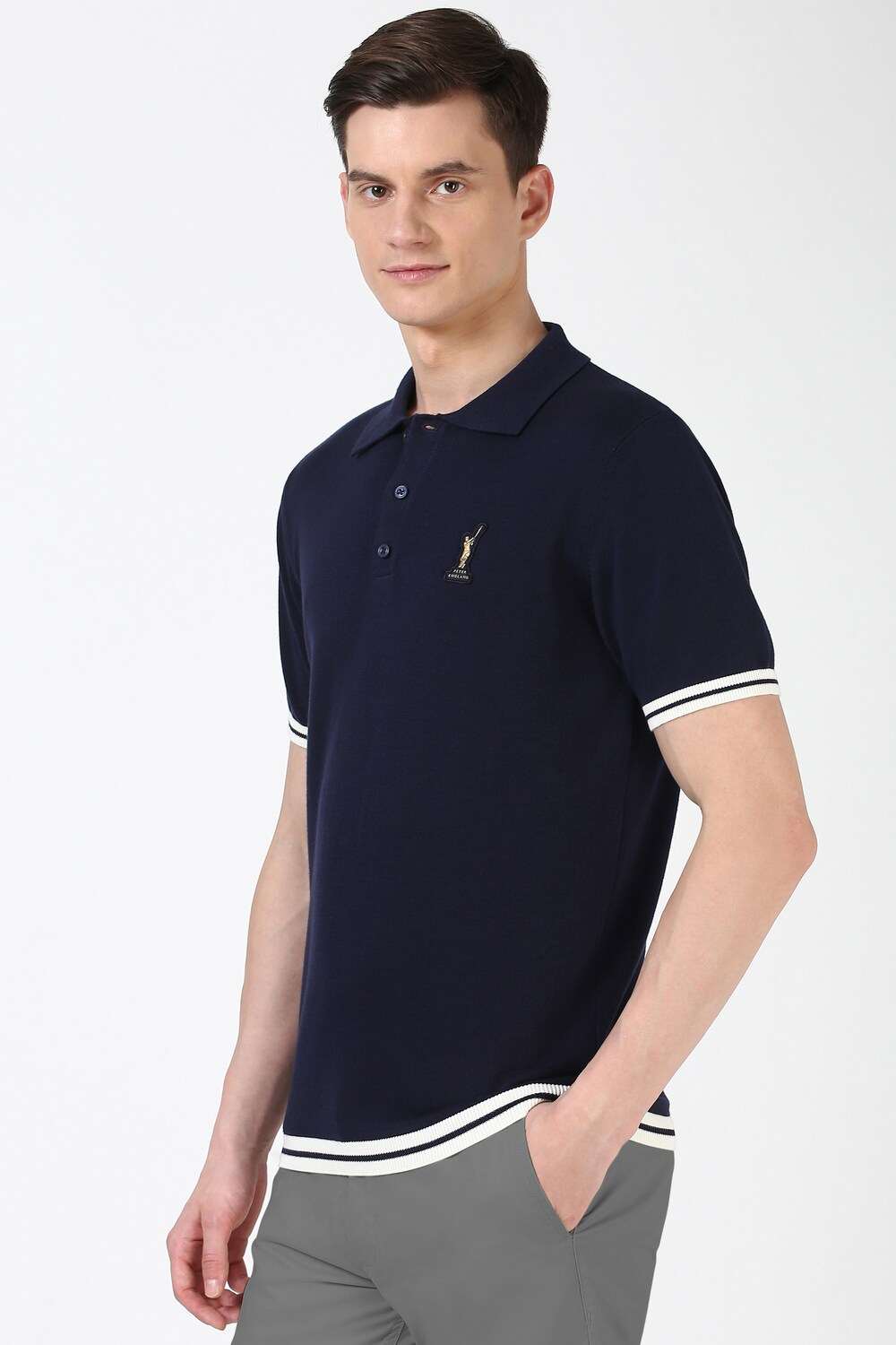 Experience casual elegance with the Peter England Casuals textured polo t-shirt. Crafted from a premium blend of cotton and spandex, it offers a comfortable regular fit that moves with you. The stylish navy hue and half sleeves provide versatility for any laid-back occasion. Perfect for effortless dressing, this t-shirt seamlessly enhances your wardrobe, inviting you to embrace a relaxed yet refined look. Transform your casual attire with this essential piece.