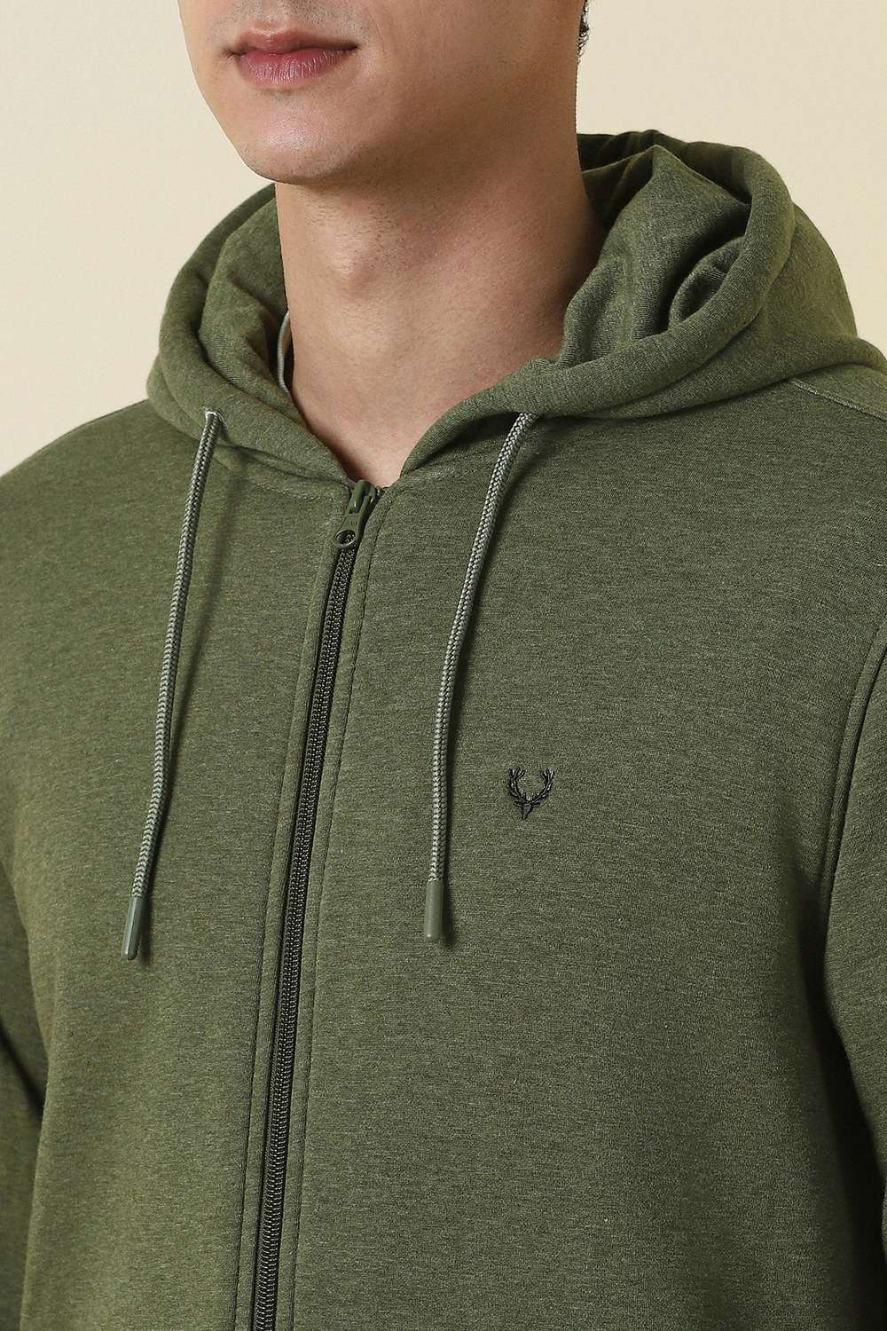 Embrace effortless style with the Allen Solly olive sweatshirt, perfect for casual outings. Crafted from a premium blend of polyester, cotton, and spandex, this solid hooded sweatshirt ensures all-day comfort with a modern fit. Its luxurious fabric offers both softness and durability, making it an essential addition to your wardrobe. Elevate your casual look with this versatile piece that beautifully combines sophistication and ease.