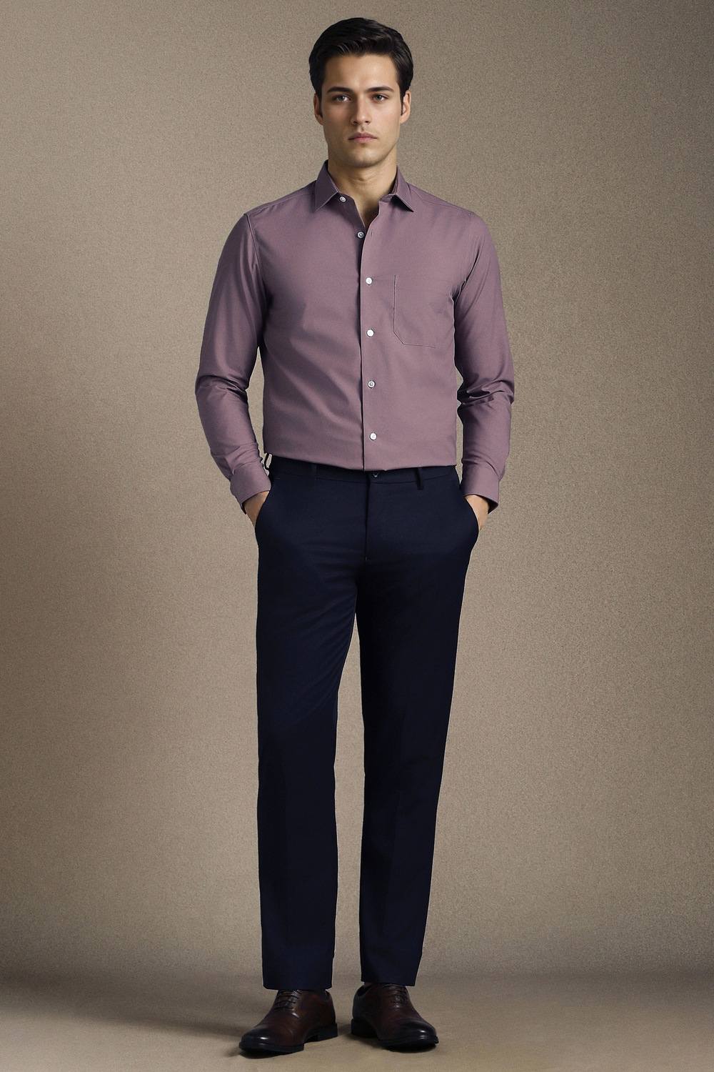 Elevate your formal wardrobe with this Louis Philippe shirt in a sophisticated purple hue. Crafted from premium cotton, it offers a comfortable fit ideal for any formal occasion. The solid pattern ensures versatility, while the breathable fabric keeps you feeling fresh. Perfect for making a statement at work or special events, this shirt seamlessly combines style and comfort for the modern gentleman. Experience elegance with this essential piece.