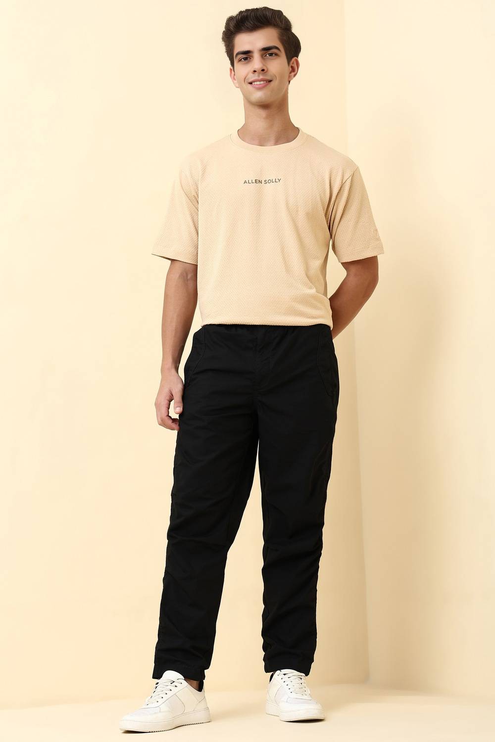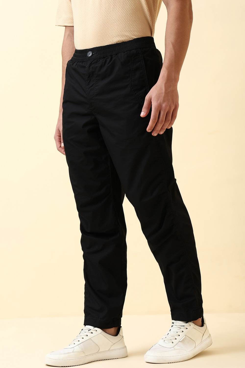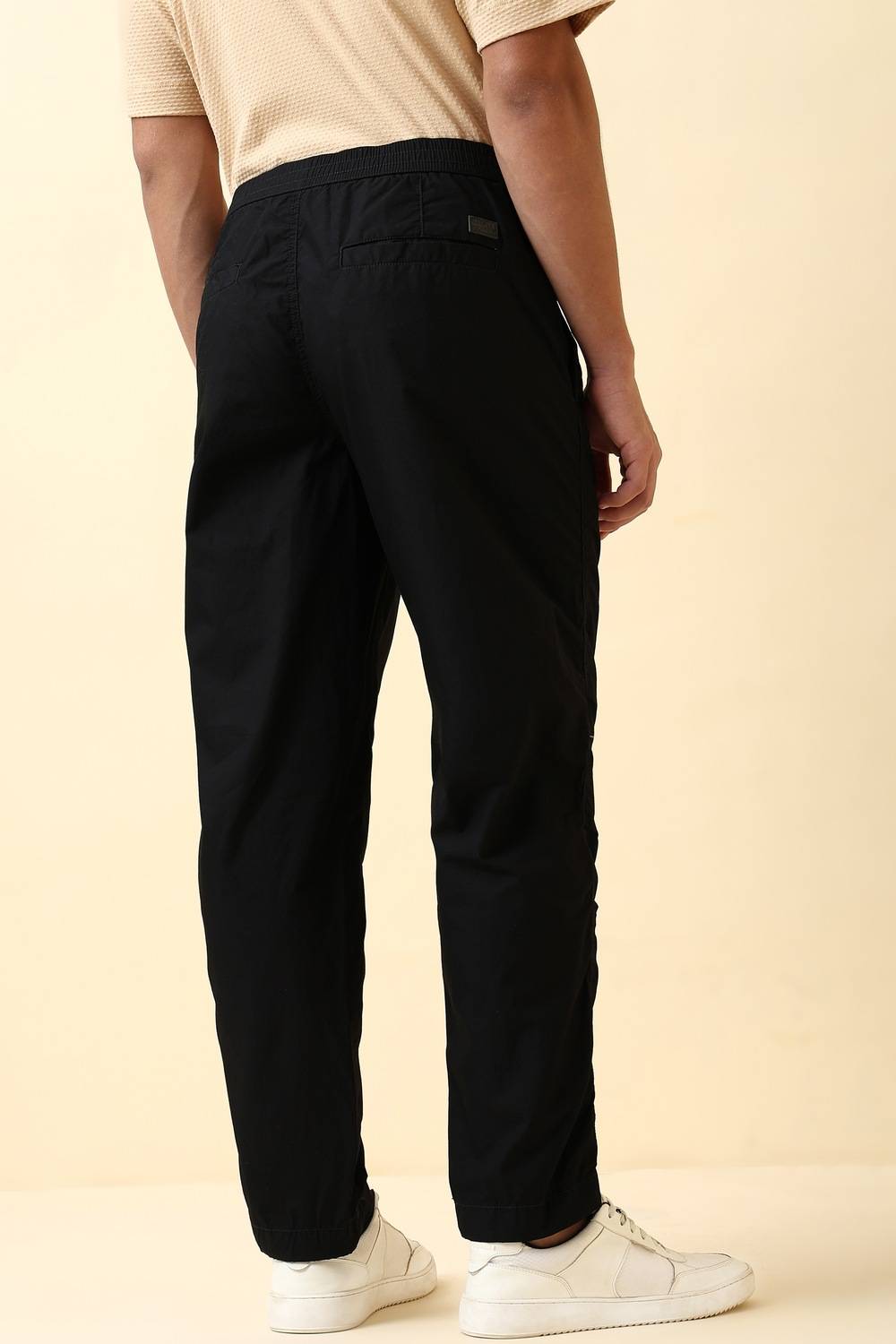 Experience ultimate comfort and style with Allen Solly's black solid track pants. Crafted from soft cotton, these casual essentials are designed for everyday wear, offering a relaxed yet trendy look. The versatile black color allows for easy pairing with various tops, making them a wardrobe staple. Elevate your laid-back outfit with these chic track pants that embody effortless style. Perfect for any casual outing, they enhance your relaxed vibe seamlessly.