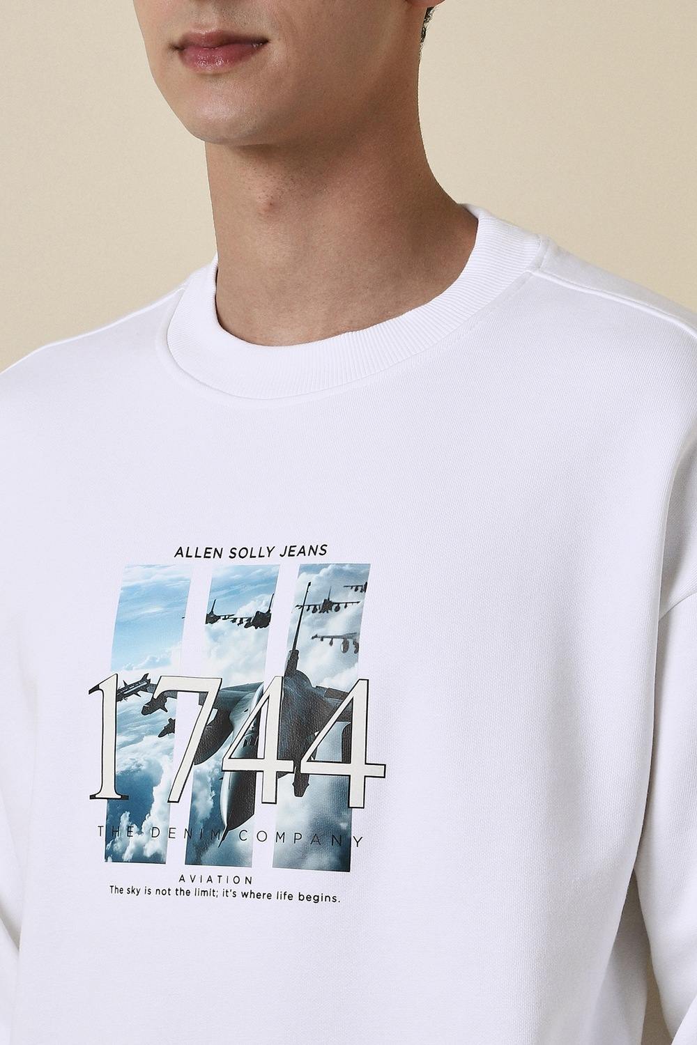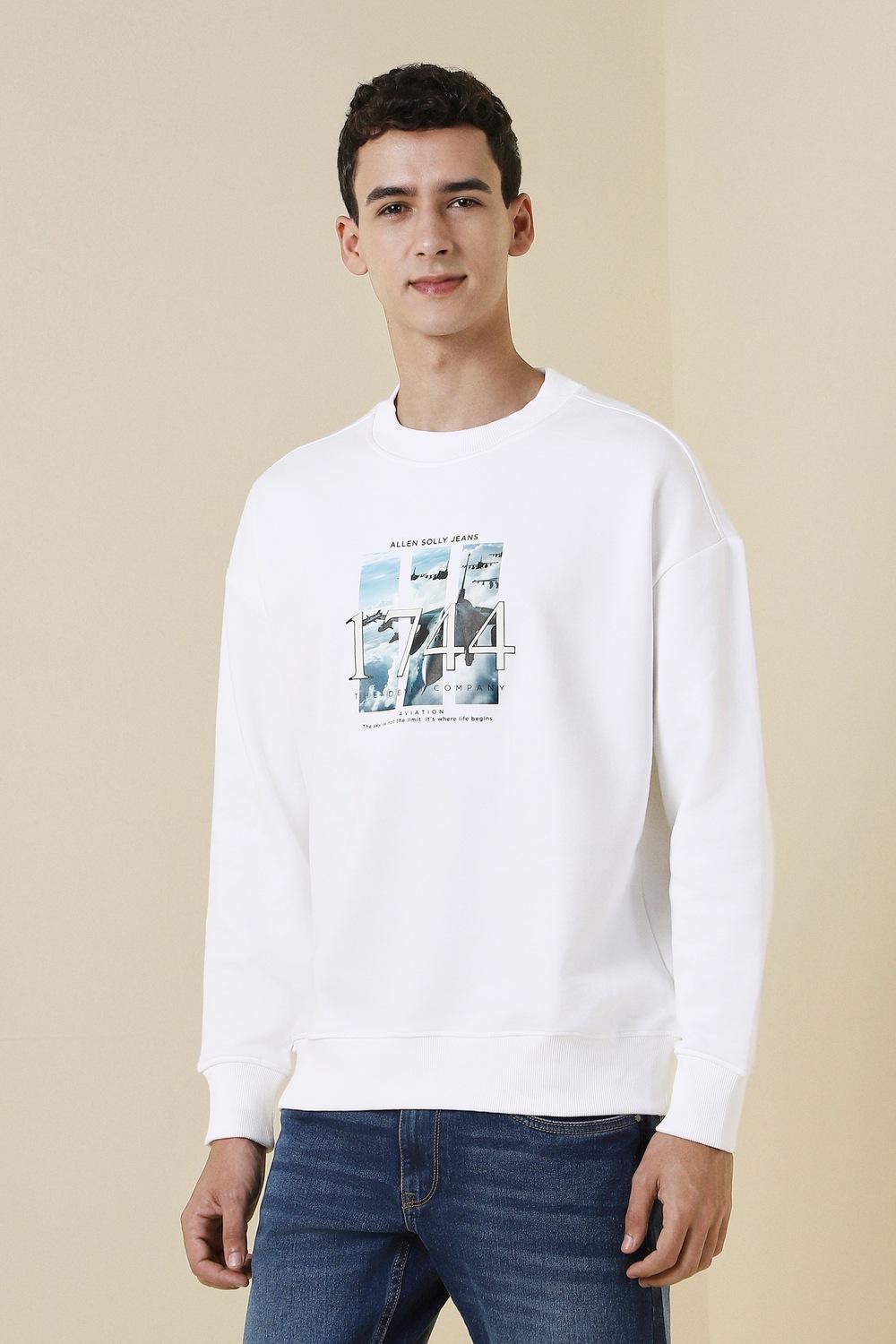 Elevate your casual wardrobe with the Allen Solly graphic print sweatshirt. Designed for comfort and effortless style, this white cotton piece features a classic crew neckline that complements any look. Ideal for laid-back weekends or casual outings, it offers a versatile option that combines fashion with ease. Embrace a relaxed vibe while showcasing your personal style with this essential addition to your collection.