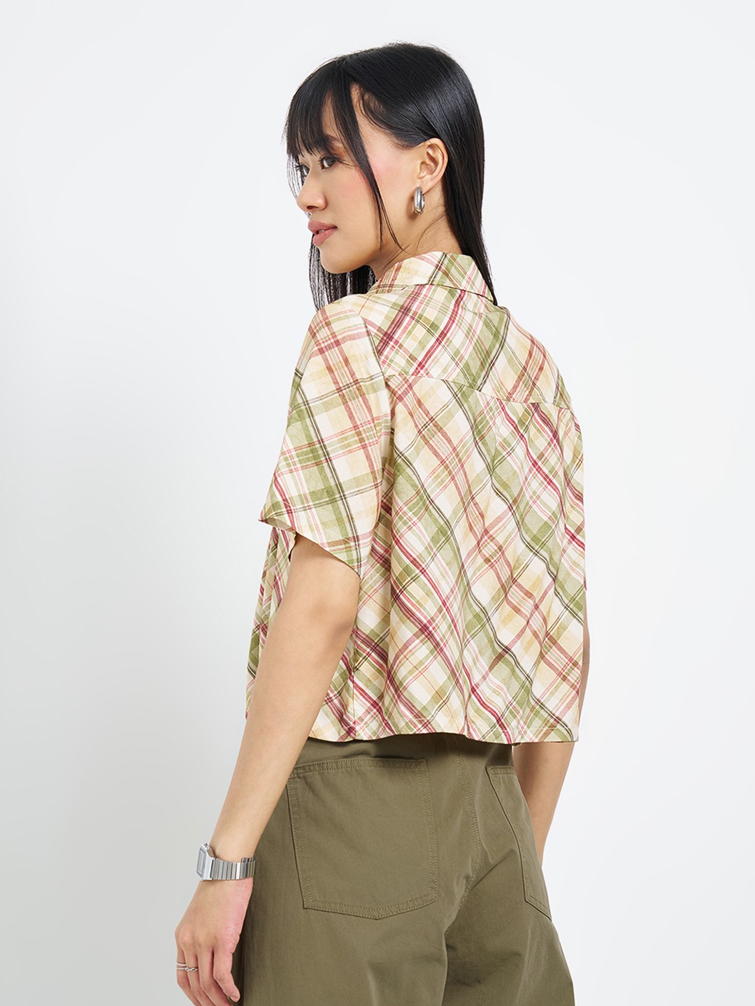 Cut in a clean, boxy silhouette, this shirt brings a relaxed, retro-inspired feel to everyday looks. Designed with a classic pointed collar, button-up front and chest flaps, it features an all-over check pattern and a cropped hem that keeps the profile sharp and modern. Crafted in a lightweight woven fabric that feels breathable and easy on the skin.
