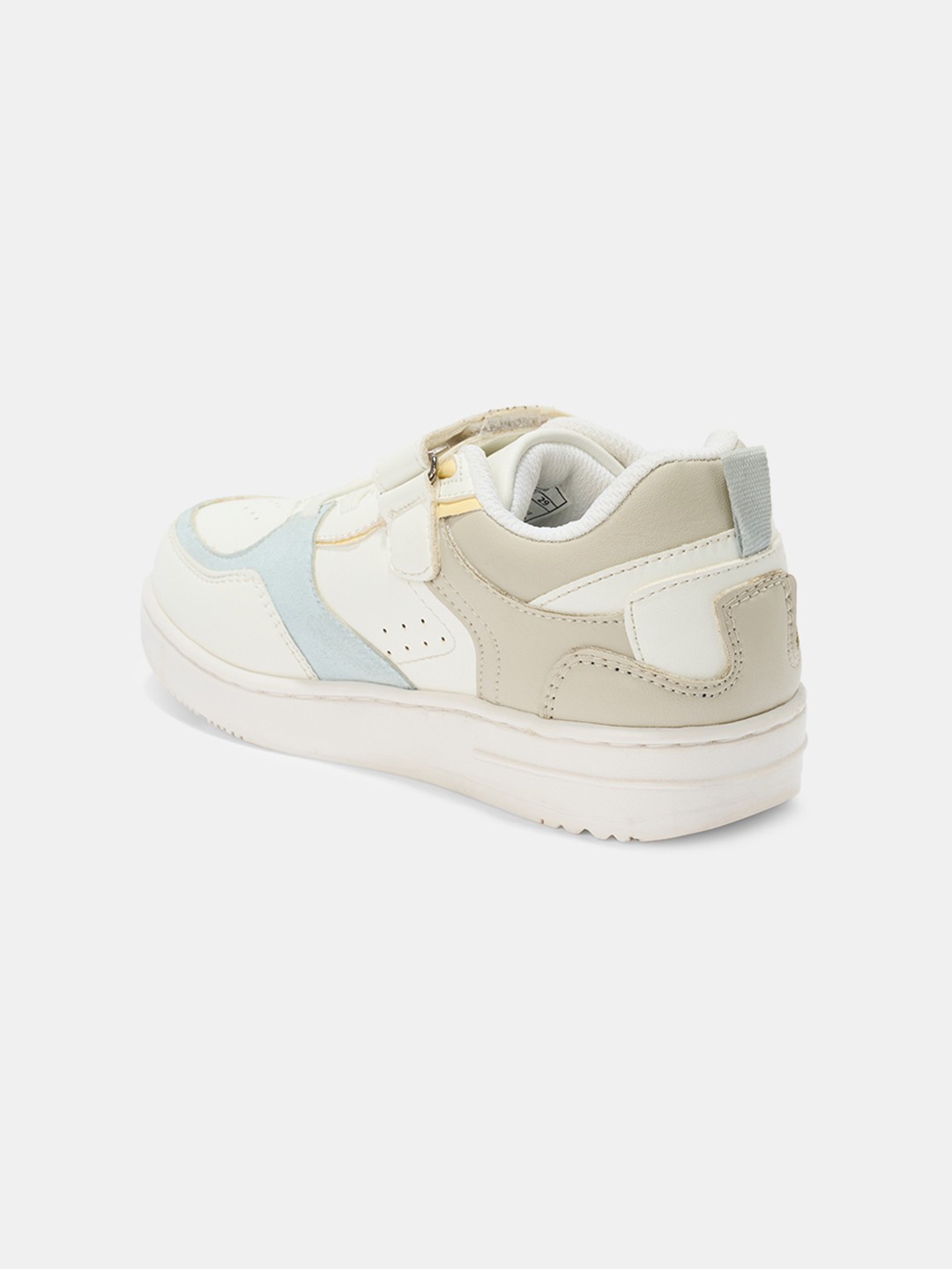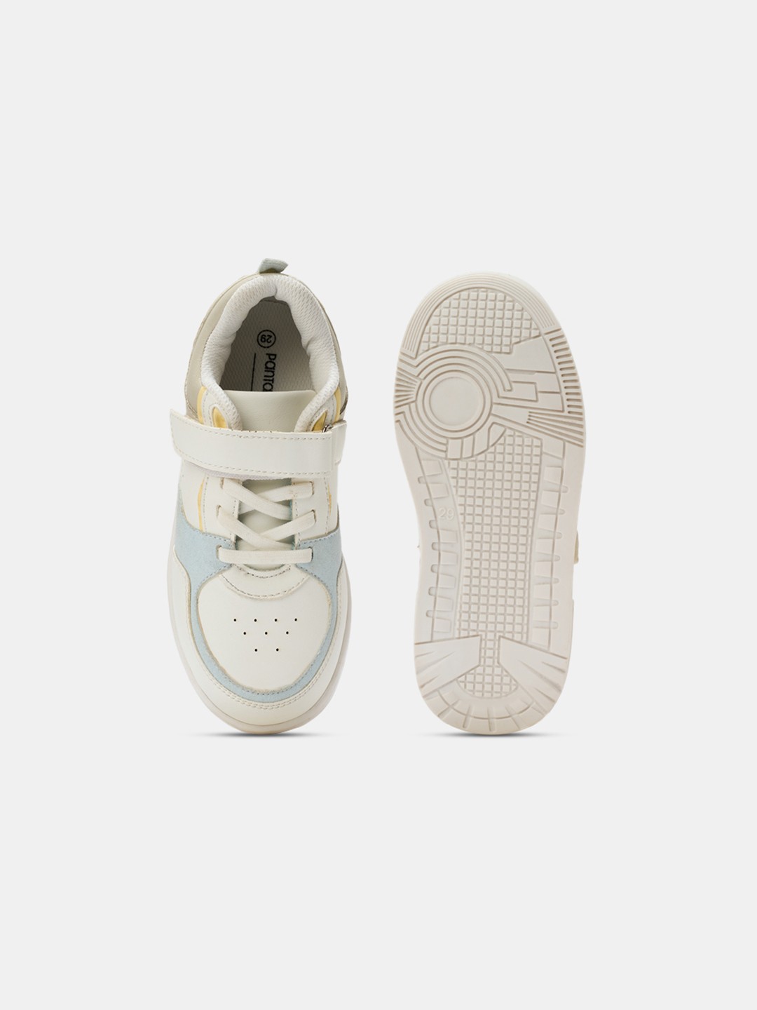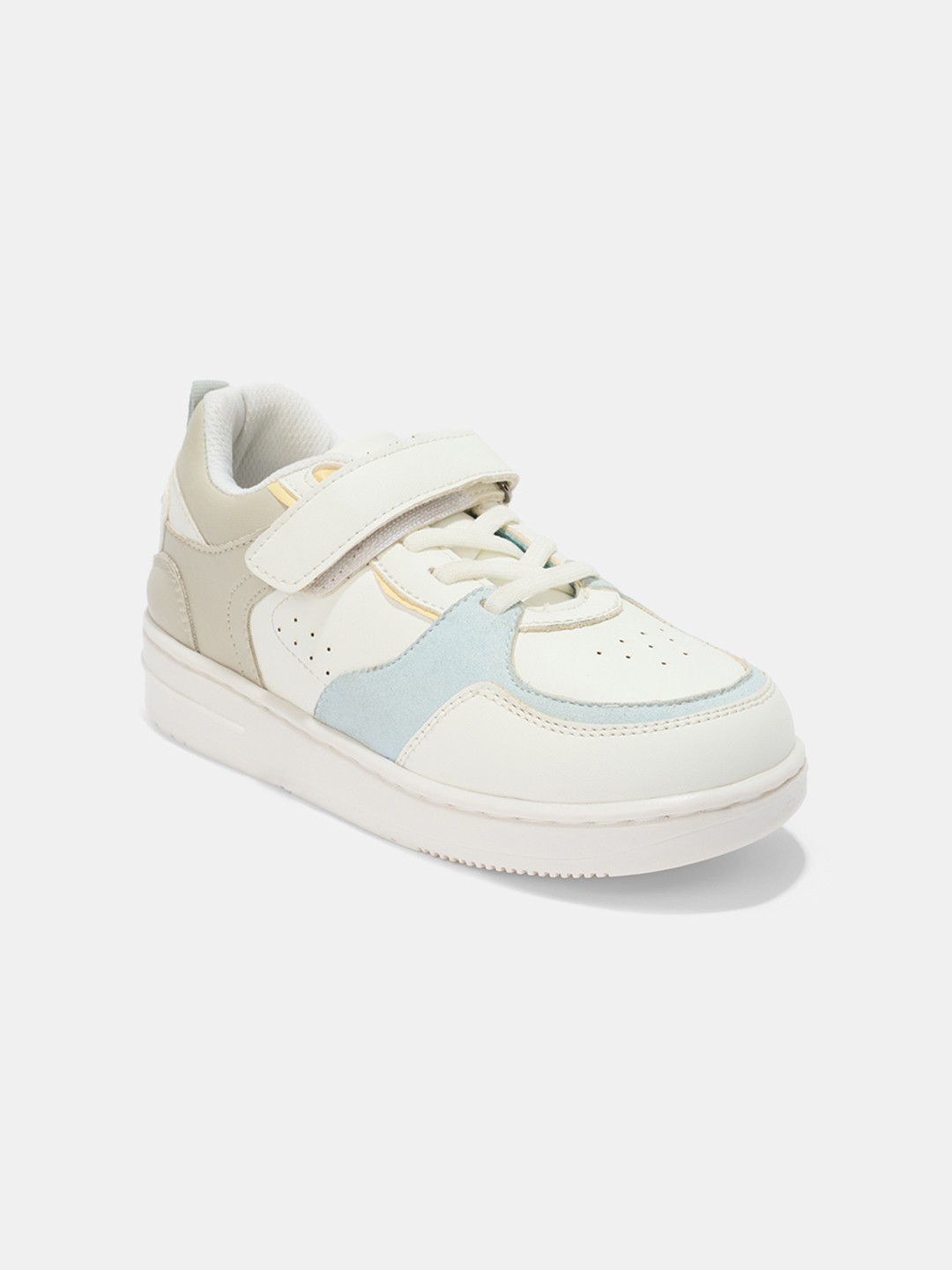 A chic mix of comfort and contrast, these sneakers bring playful polish to everyday looks. Designed with cream uppers, blue suede-like panels, and yellow accents, secured with lace-up fronts and velcro straps. Soft cushioned insoles and sturdy outsoles ensure comfort with every step.