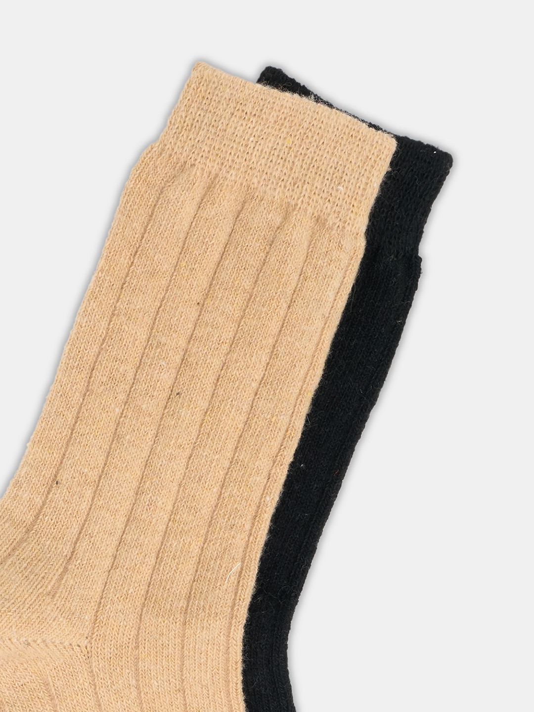 Soft, snug, and built for the chill, these ribbed winter socks offer timeless comfort. Featuring a stretch-knit construction with vertical rib lines that enhance grip and insulation, they come in solid black and beige tones for effortless versatility. Crafted in a cosy, medium-weight knit that keeps warmth sealed in through the season.
