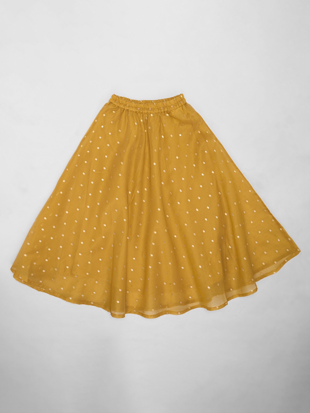Mustard Embroidered Waistcoat & Foil Print Ghargra Set