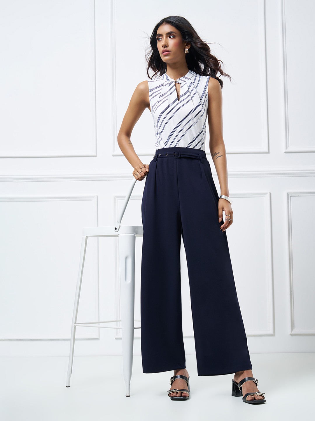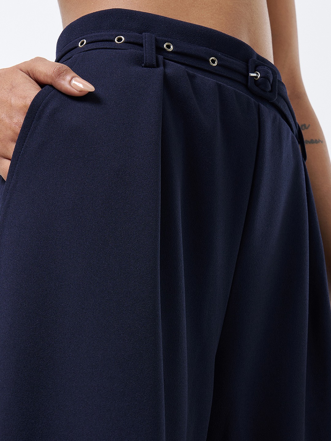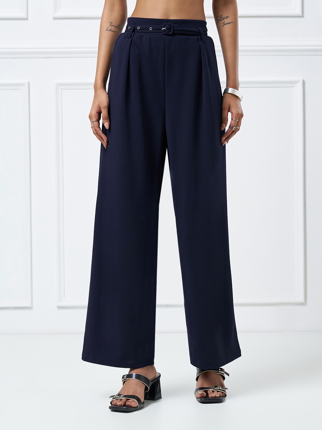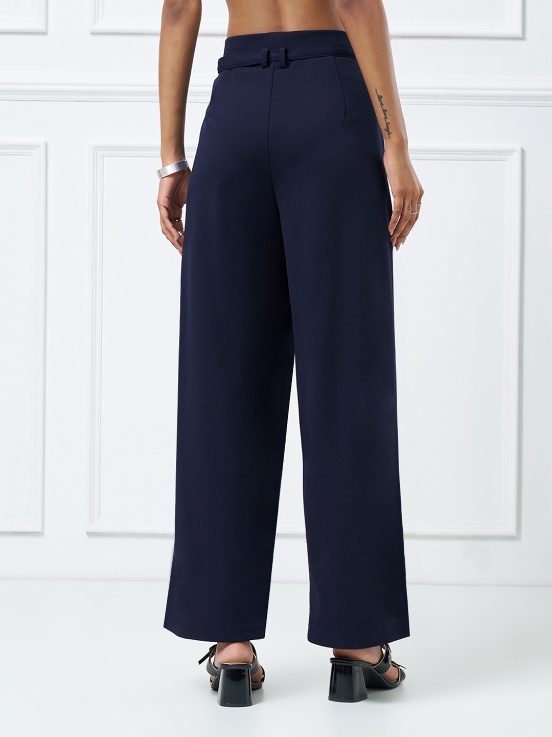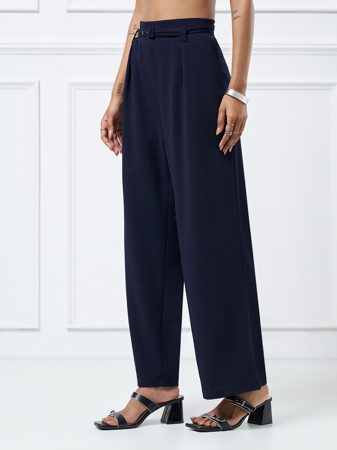 A refined wardrobe staple that balances structure with effortless movement. Designed with a high-rise waistband, soft front pleats and a detachable self-belt, these trousers fall into a straight-leg silhouette with a clean, fluid drape through the leg. The tailored construction delivers a polished look while remaining relaxed and contemporary.