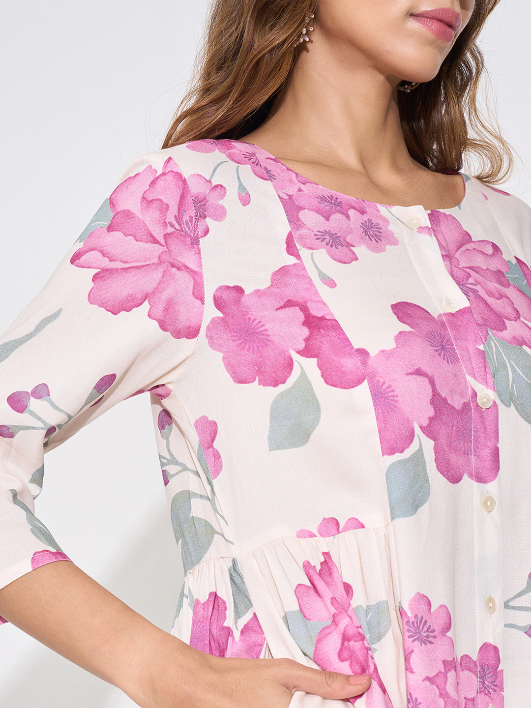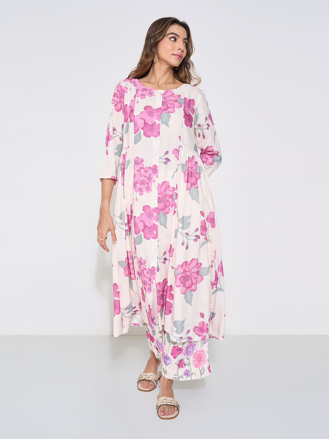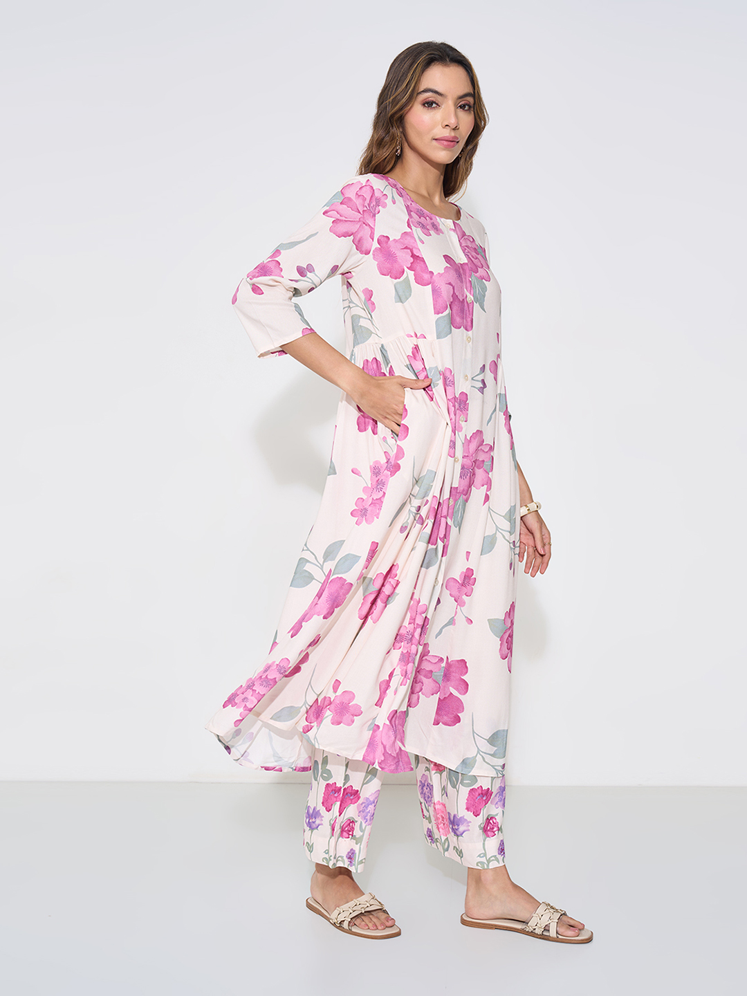 Home/Kurtas/RANGMANCH by Pantaloons/off-white floral print flared kurta