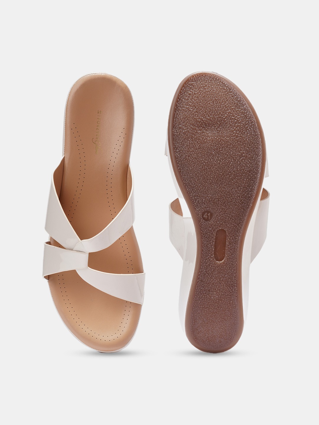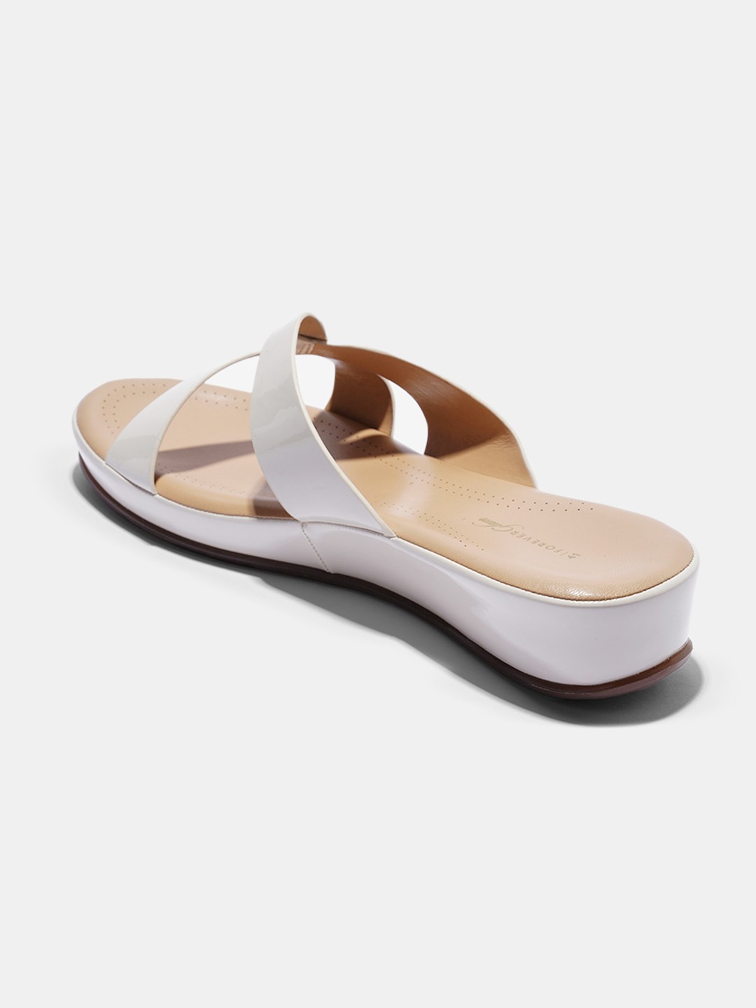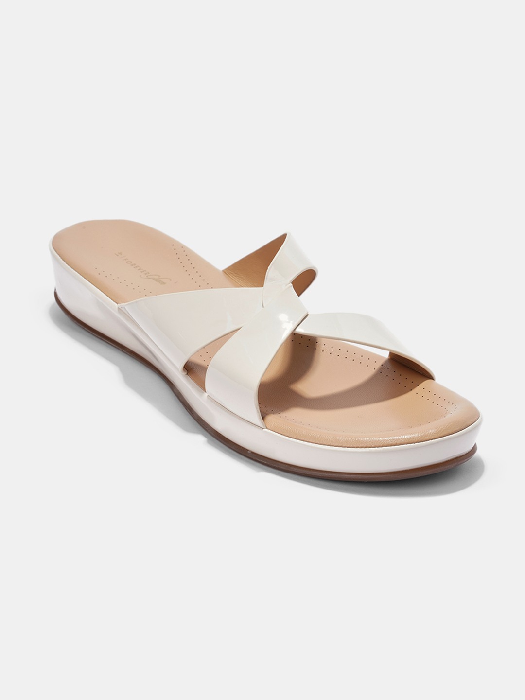 Sleek and minimal, these sandals feature glossy patent cross straps and cushioned footbeds designed for lasting ease. The contoured sole supports every step, while the slight lift adds subtle definition. Finished with smooth lining and a clean silhouette that pairs with everything.