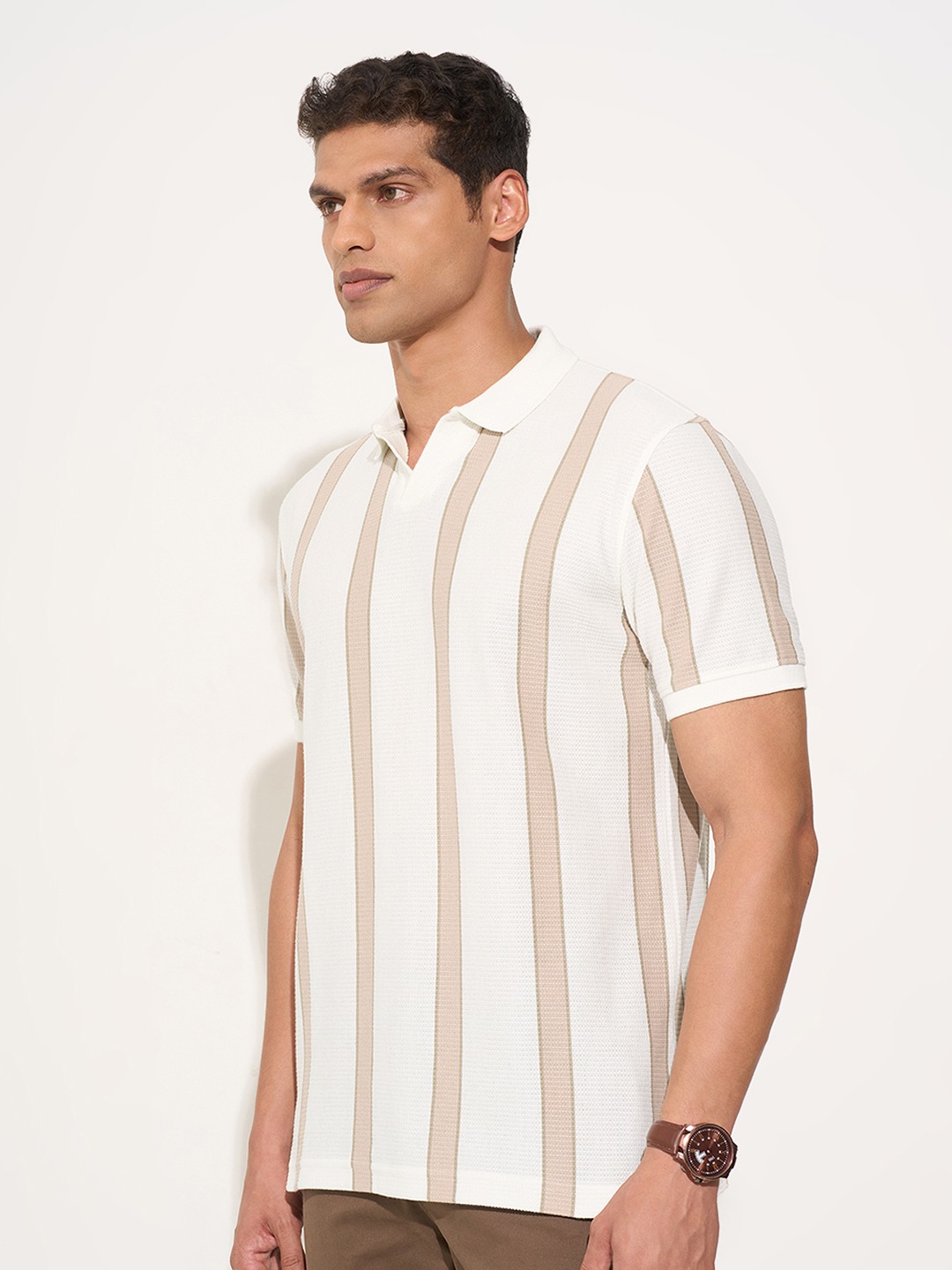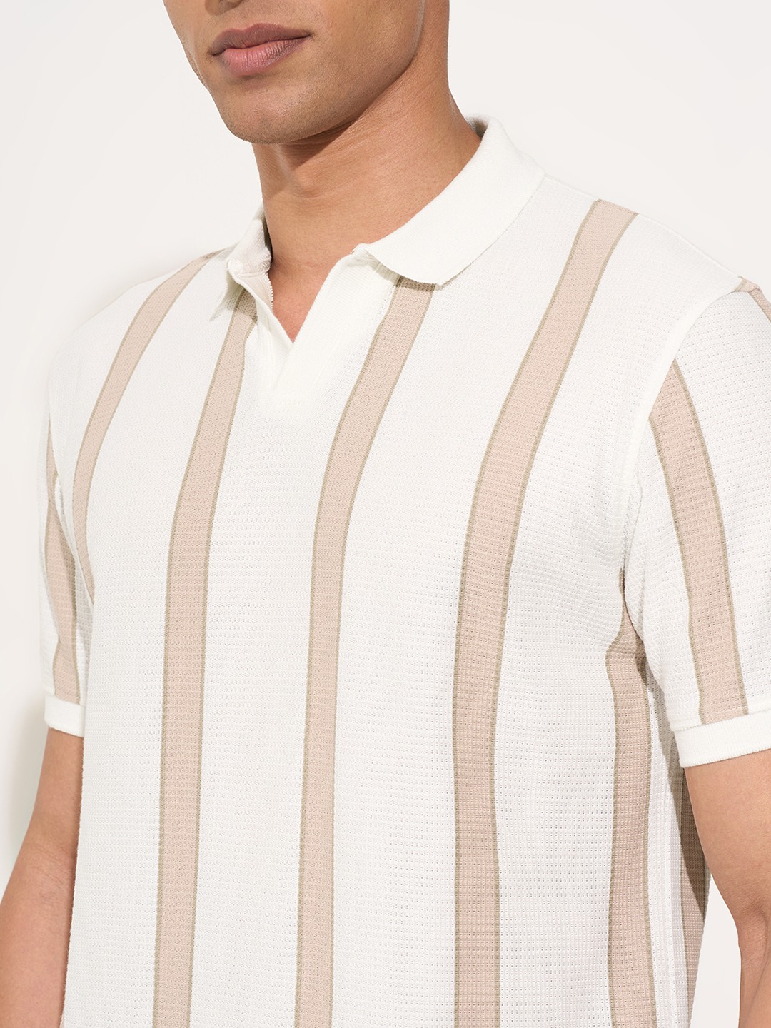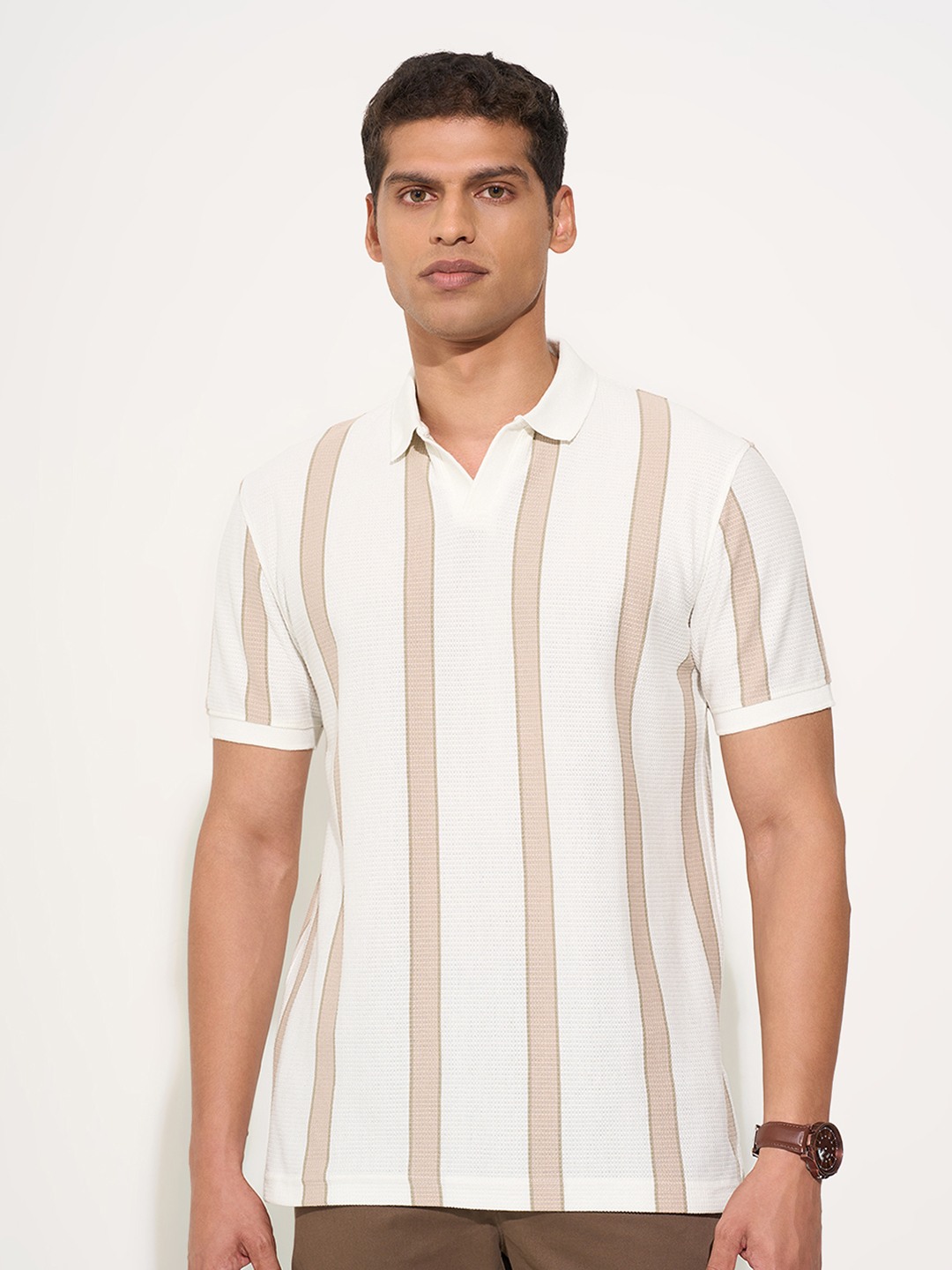 Home/T-Shirts/Peregrine by Pantaloons/off-white striped johnny polo t-shirt