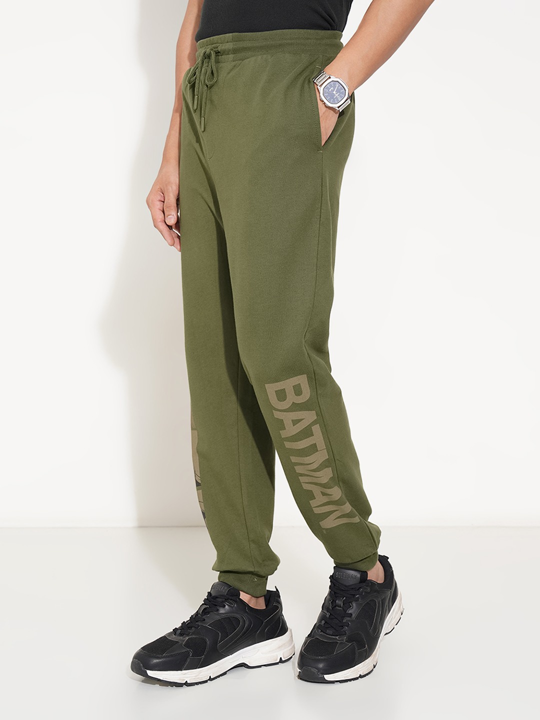 Home/Trackpants/SF JEANS by Pantaloons/olive batman graphic casual track pants