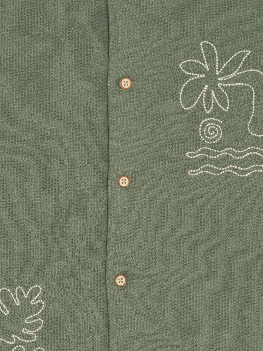 A playful nod to tropical adventures, this shirt brings together comfort and charm in one breezy silhouette. Crafted from woven fabric, it features half sleeves, a classic collar and a button-up front with light-toned buttons. The standout detail lies in its whimsical embroidery that adds a splash of imagination to everyday dressing.