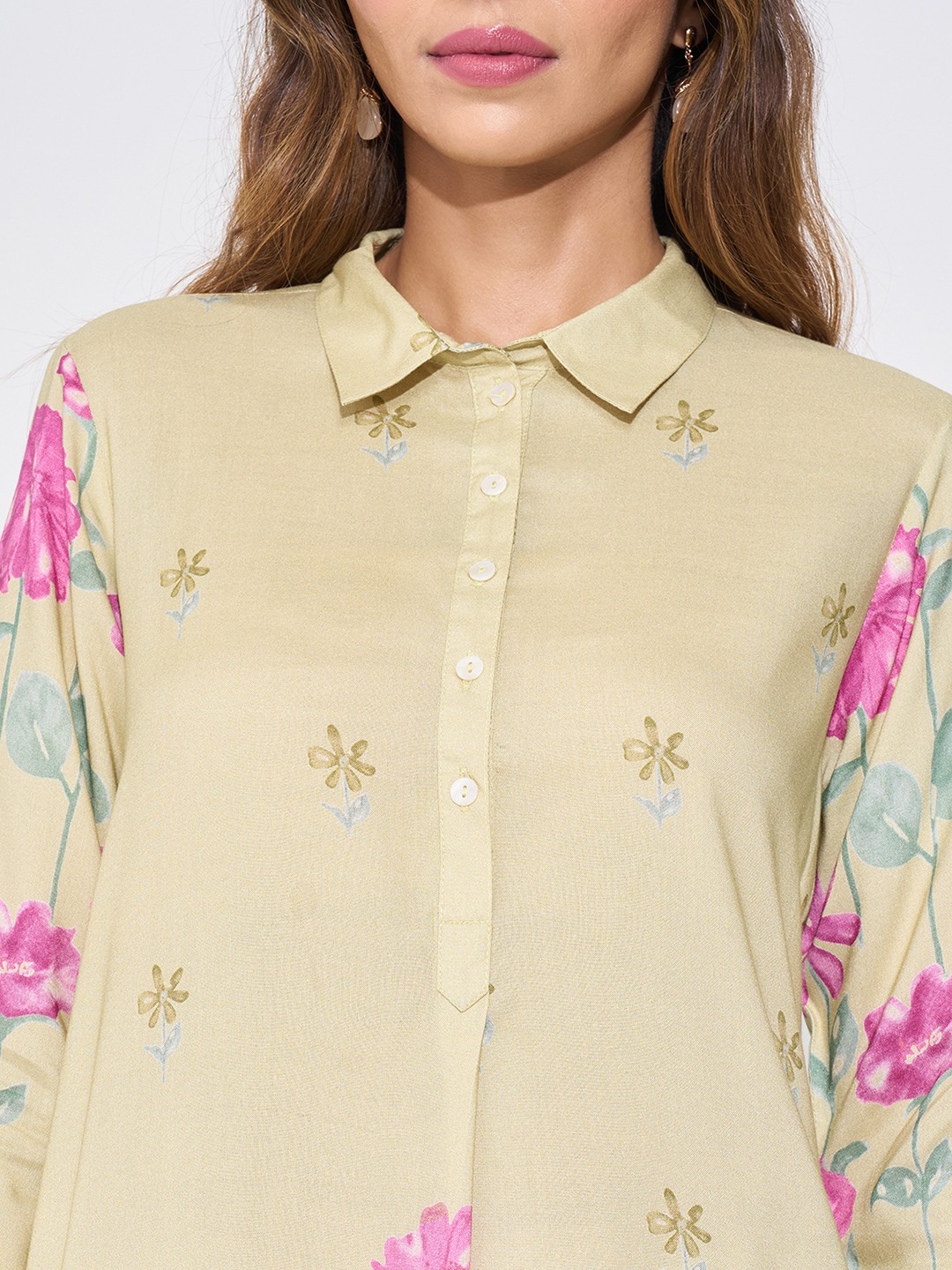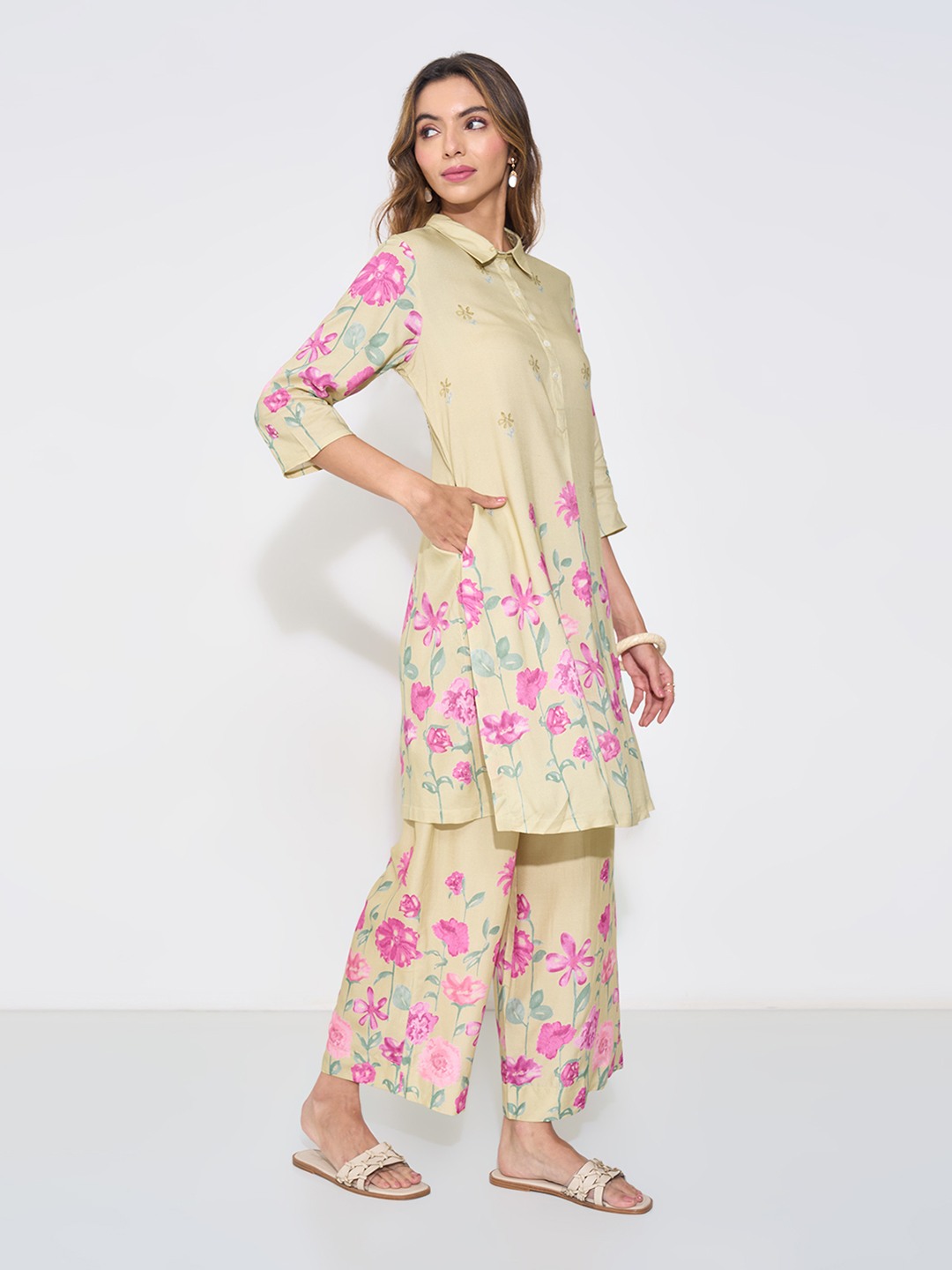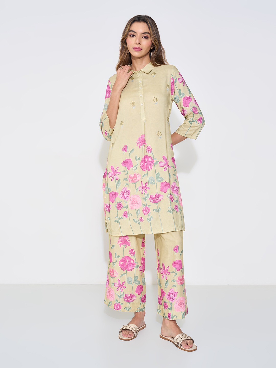 Home/Kurtas/RANGMANCH by Pantaloons/olive floral print casual kurta