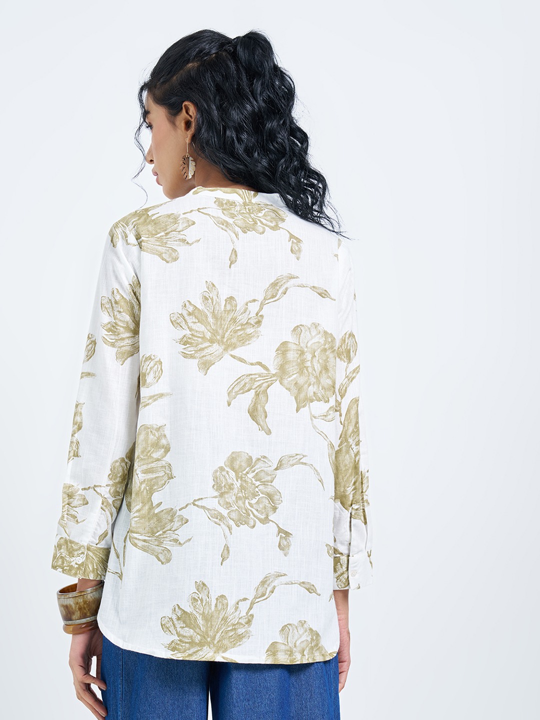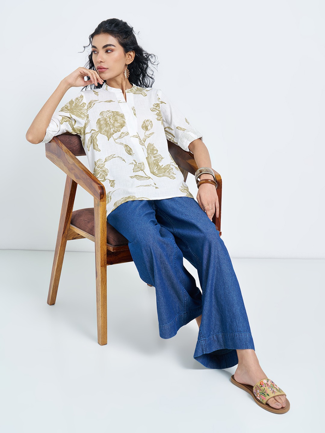 Watercolour florals soften this clean, everyday silhouette. Designed with a split neckline and 3/4 sleeves, this tunic features an all-over floral print on a crisp base with a relaxed fall through the body. Easy yet polished, it brings a fresh, contemporary lift to casual dressing.