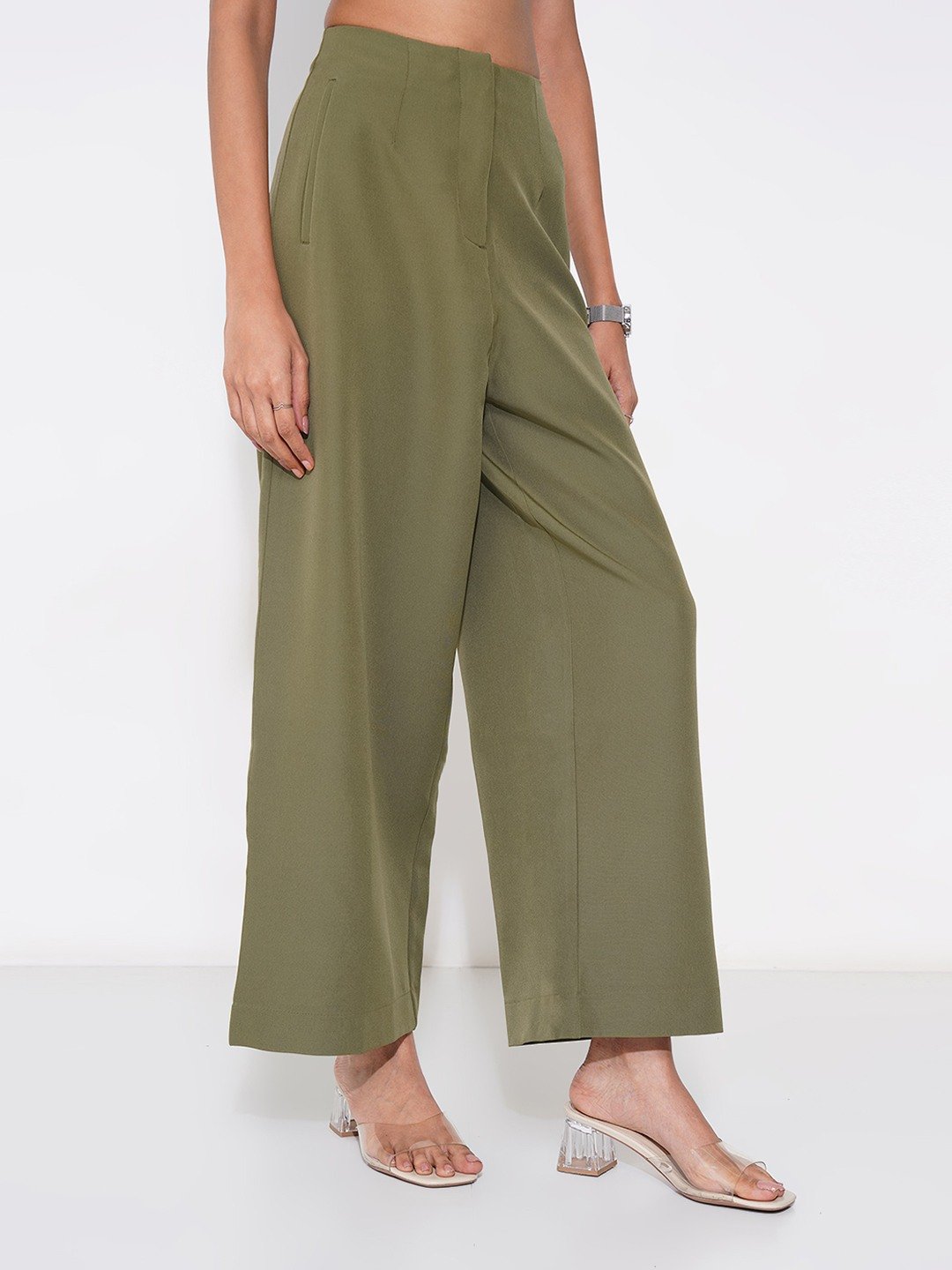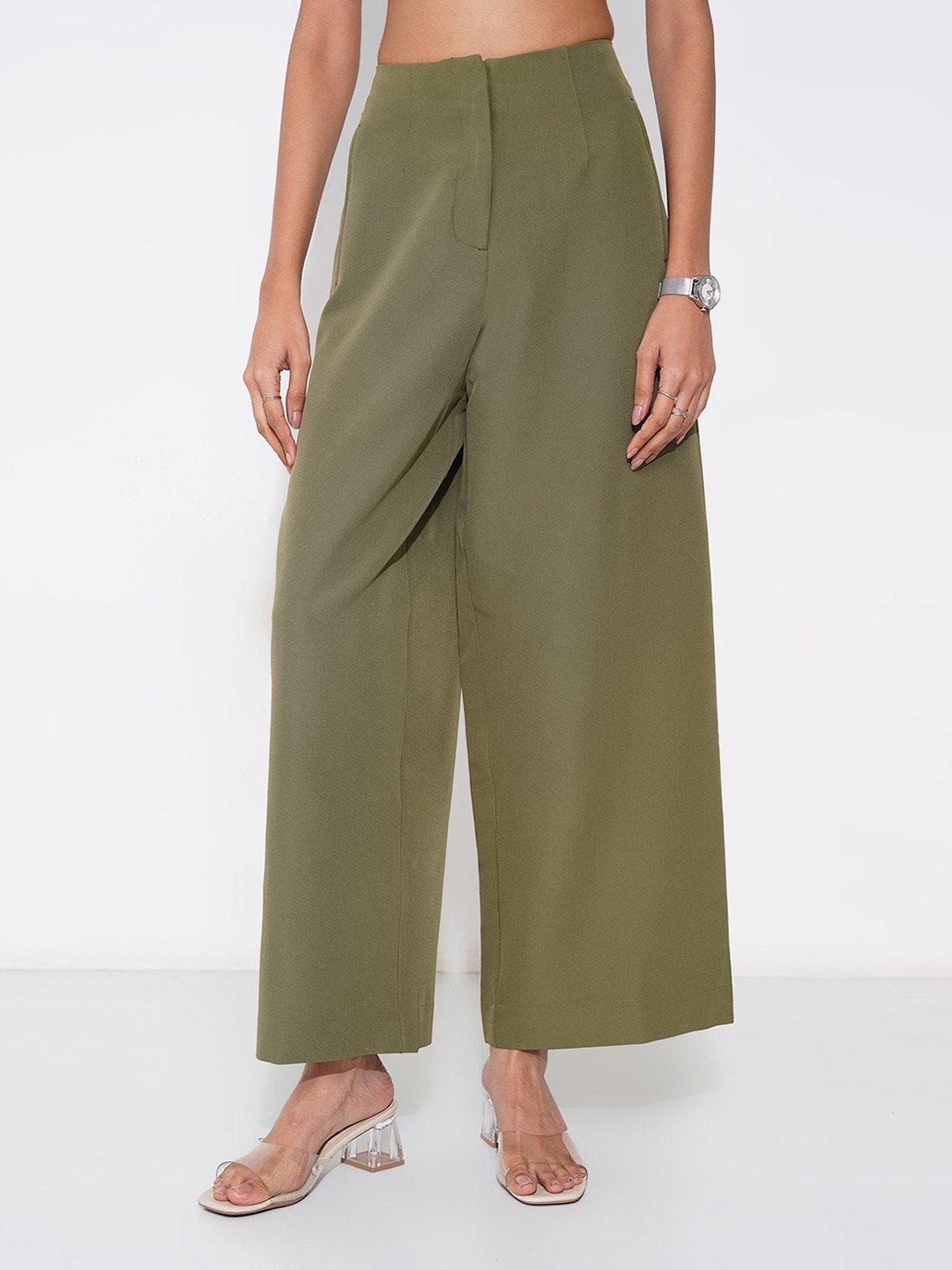 Home/Trousers/Annabelle by Pantaloons/olive solid wide leg pants