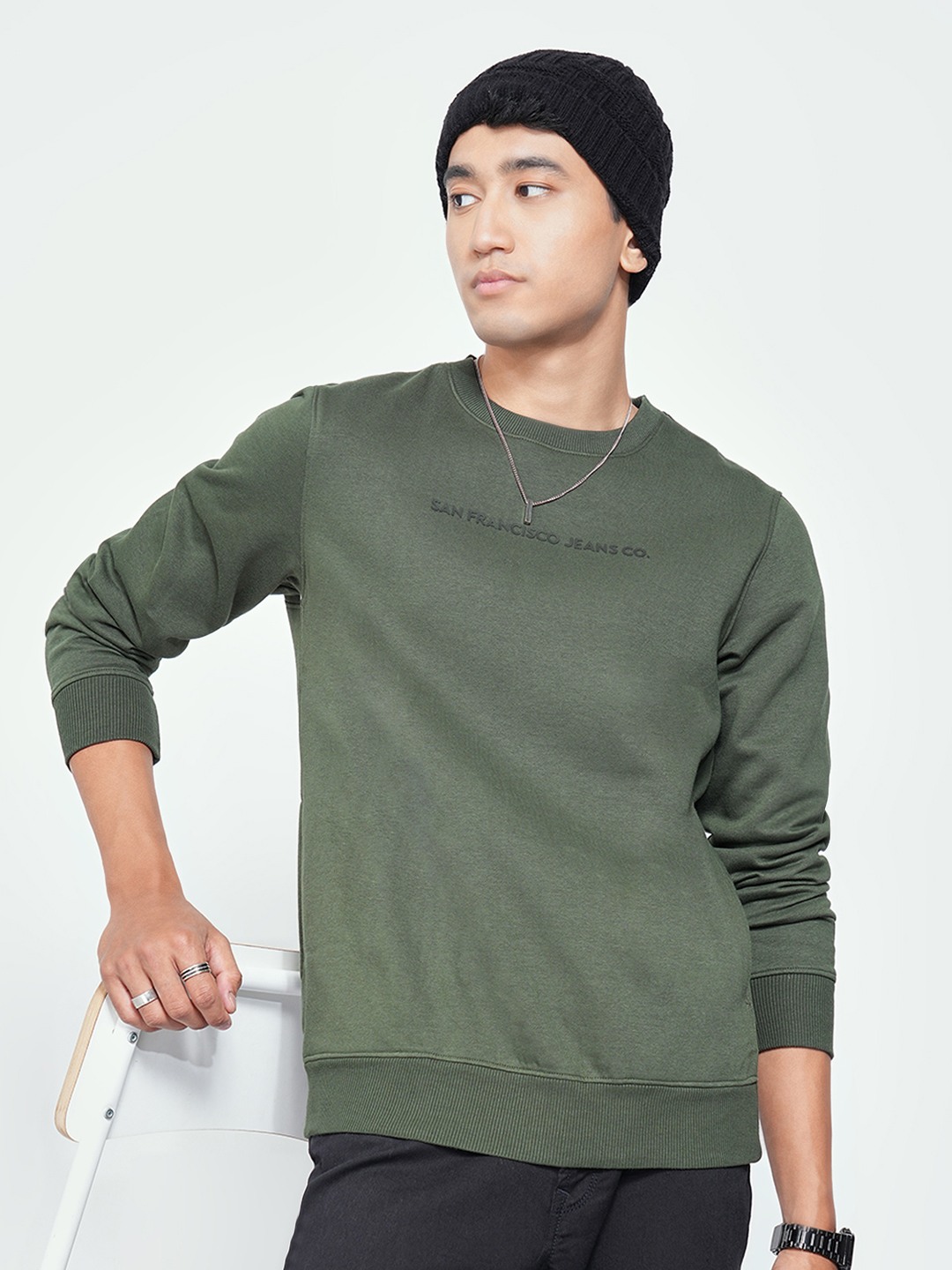 Laid back energy meets classic streetwear in this crew neck sweatshirt. Designed in a relaxed fit with ribbed hems and cuffs, it features minimal typographic prints on the front and a bold graphic detail at the back. Finished in a soft knit structure that ensures comfort through every season.