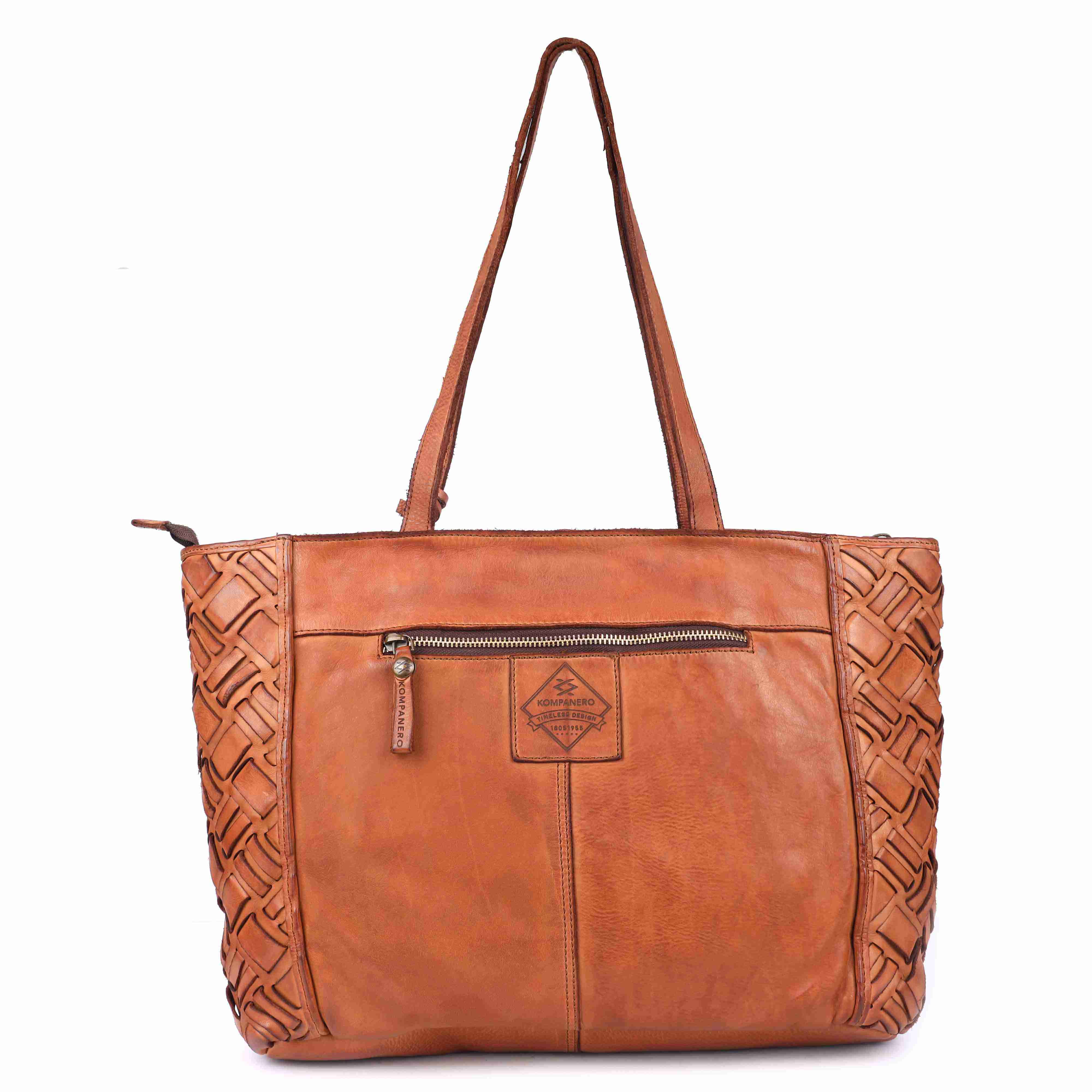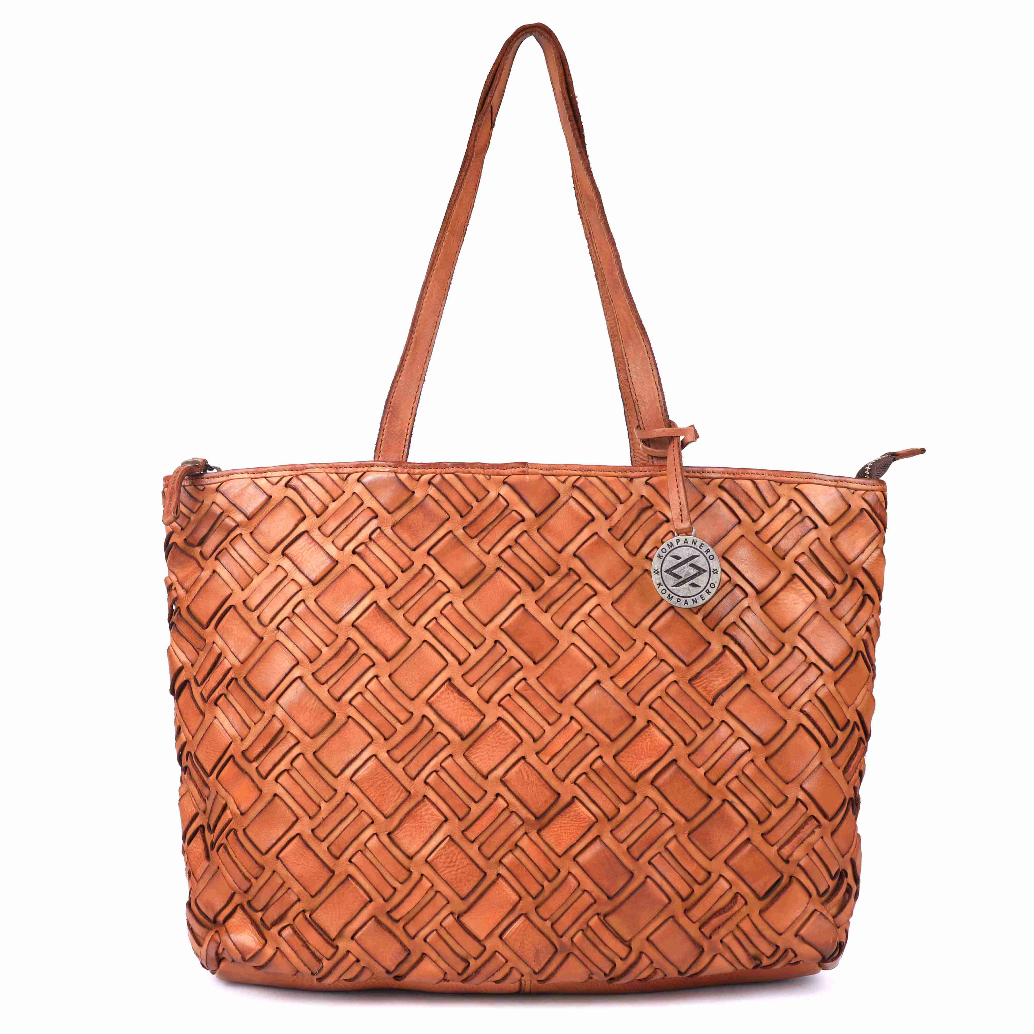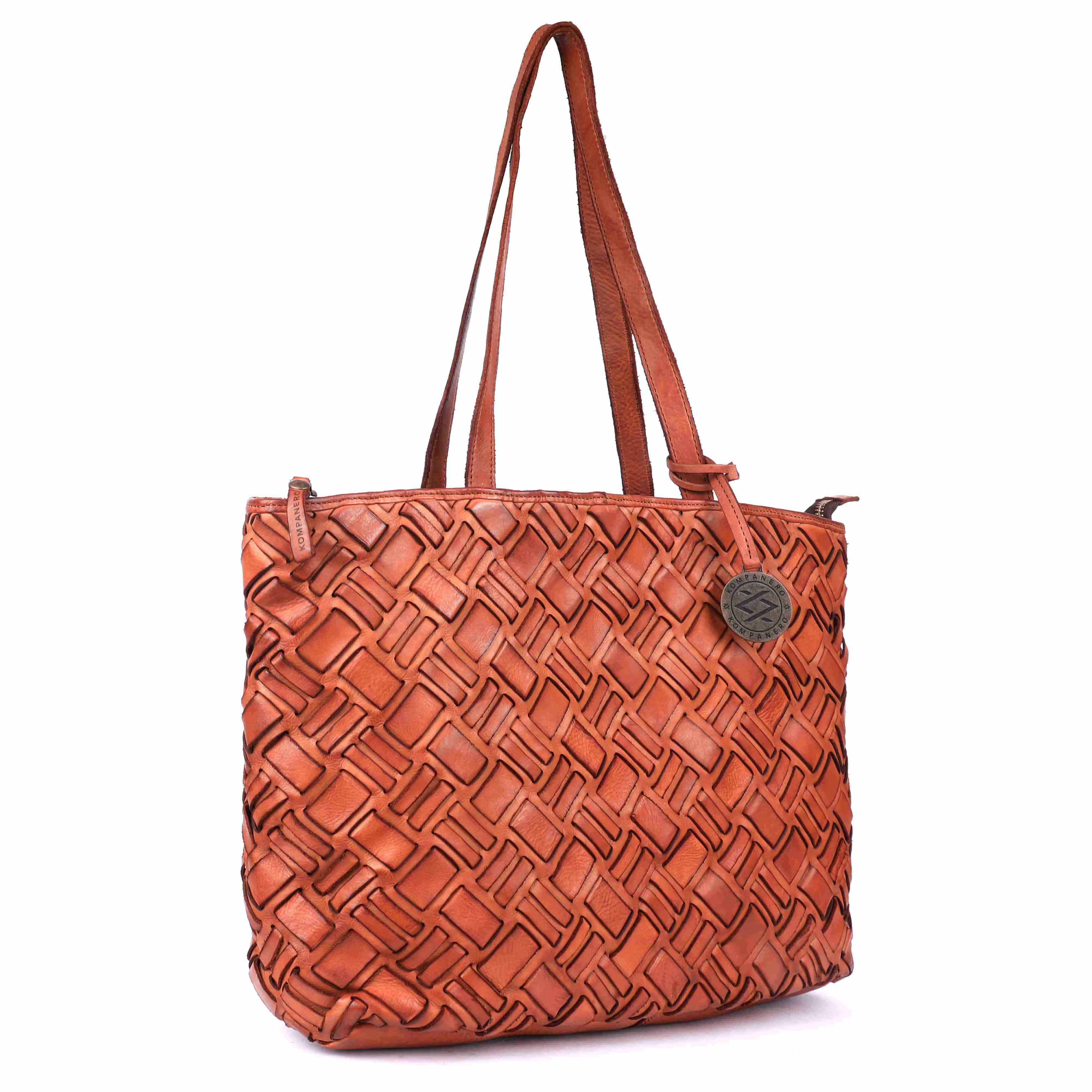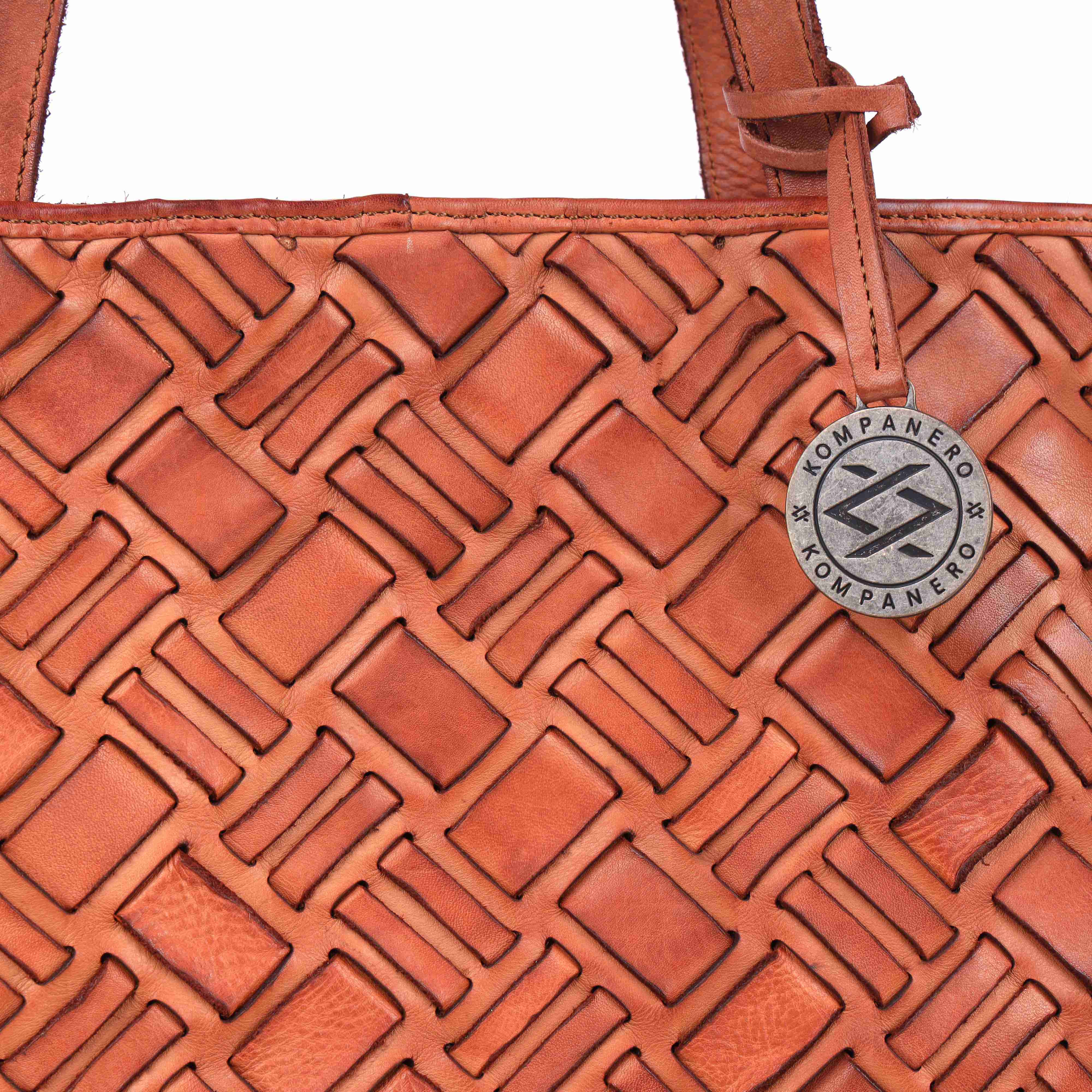 This vegetable-tanned leather weave showcases a bold, structured look with an intricate interlocking pattern of diamond-like segments. The basket-like texture gives it a visually striking, three-dimensional appearance. Cut-out spaces within the weave allow light to pass through, adding depth and enhancing the natural beauty of the leather. The tight and layered construction not only highlights exceptional craftsmanship but also ensures lasting durability, making it a perfect blend of style and strength.