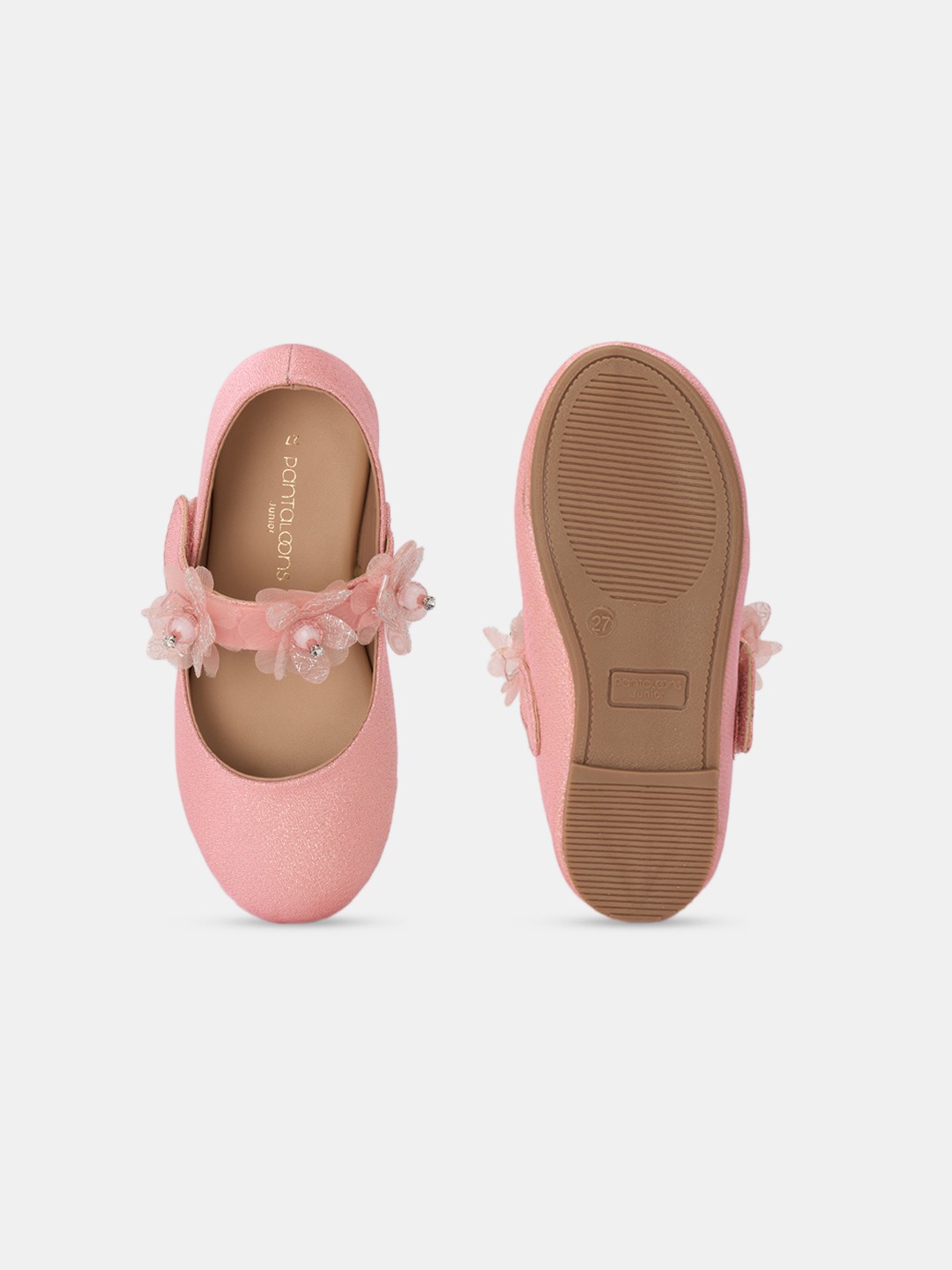 Add glam style to your young one's look with this expressive pair. These ballerinas have a slip-on construction with a detailed, elasticated strap, a glittery upper and a low-heeled outsole. Constructed from high-quality materials that are equally flexible and responsive.