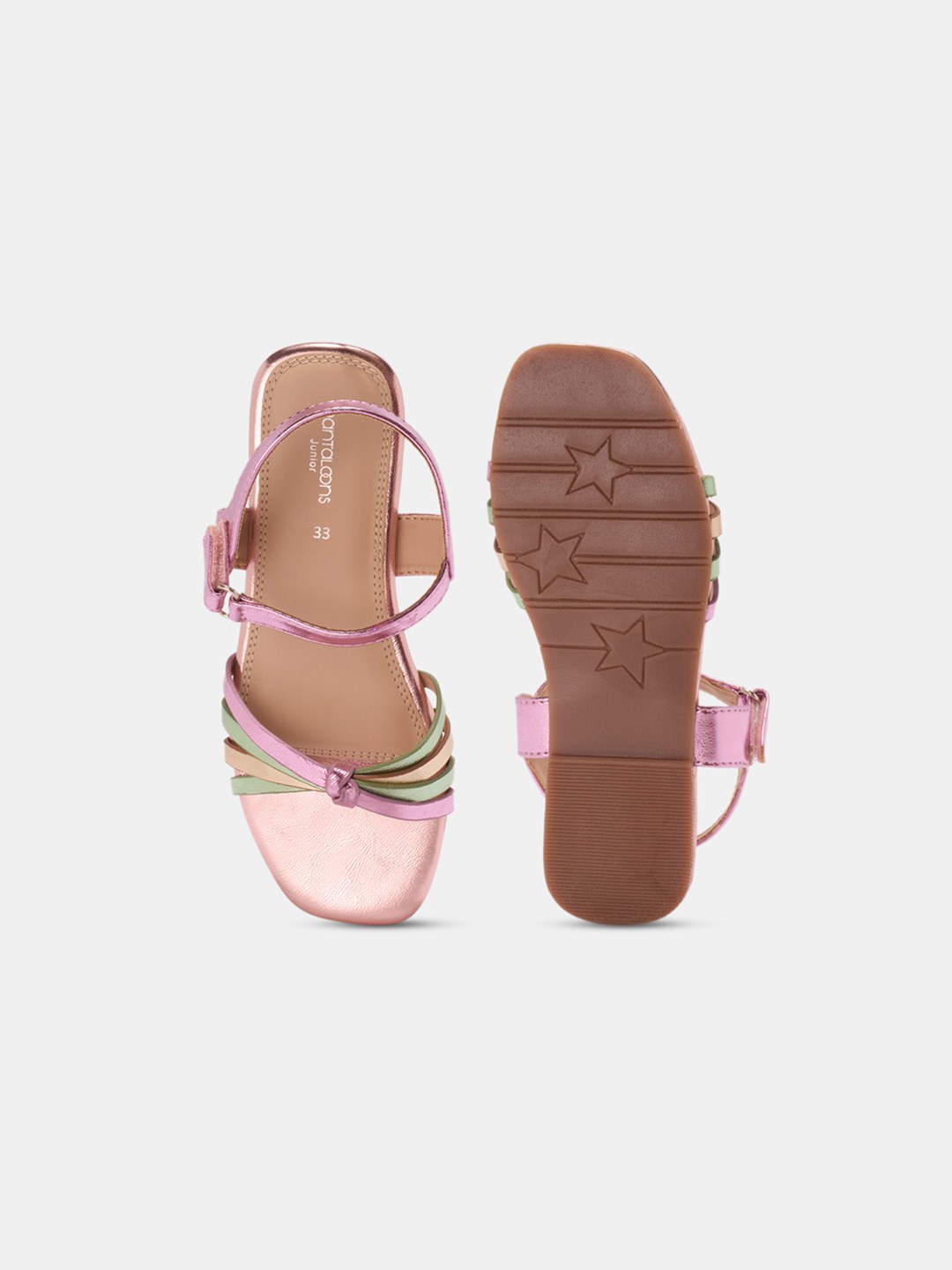A lovely footwear addition to your child’s closet. It features a square toe, a multicoloured metallic upper with a supportive ankle strap and a resilient outsole. Made with the best quality materials to ensure impressive durability and wearing comfort.
