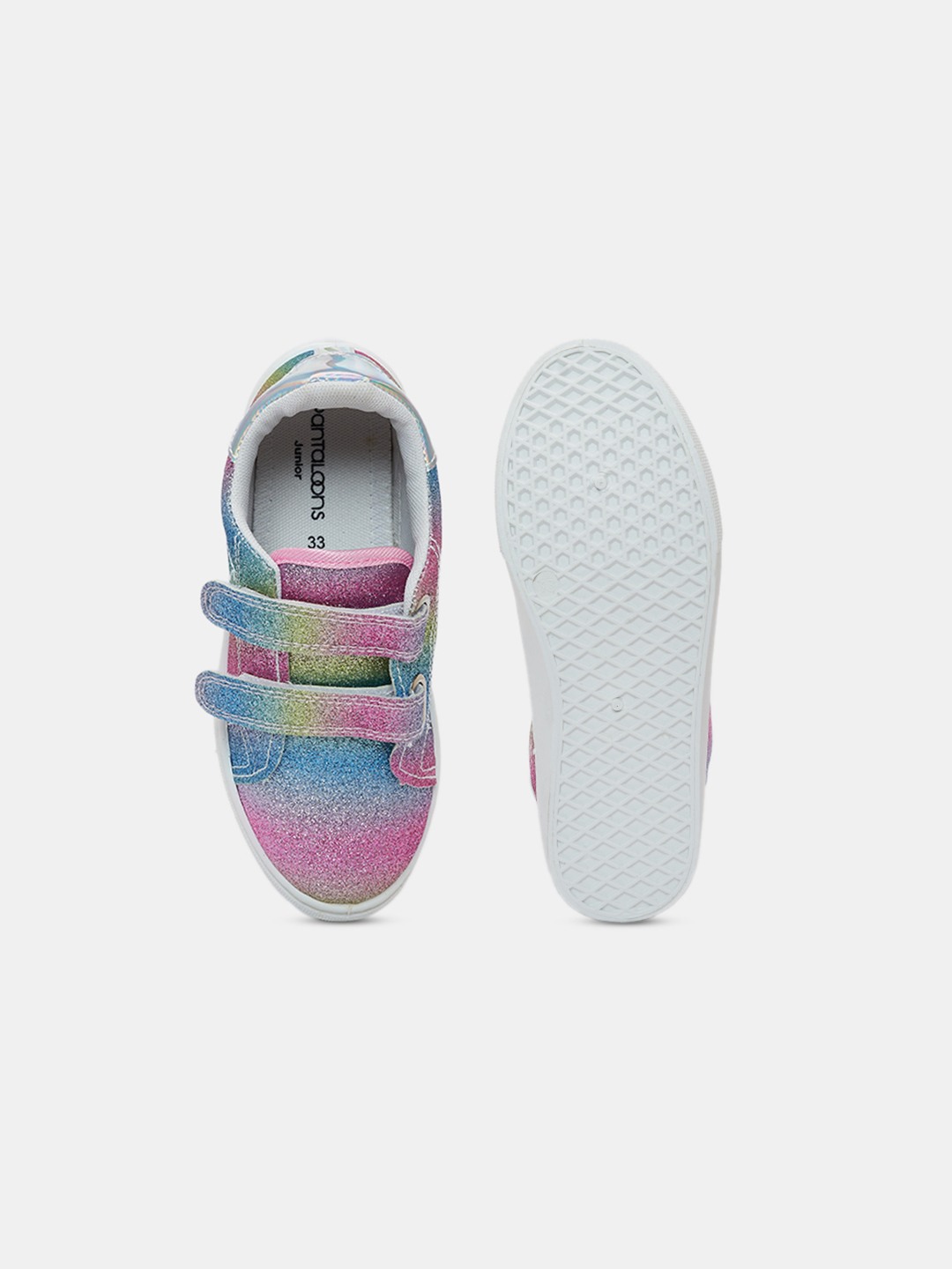 Let your junior look awesome with this wowsome option. These shoes have a round-toe styling, dual velcro closure, a colourful, glittery upper and a solid outsole. The premium materials selection provides ample support and comfort to the feet.