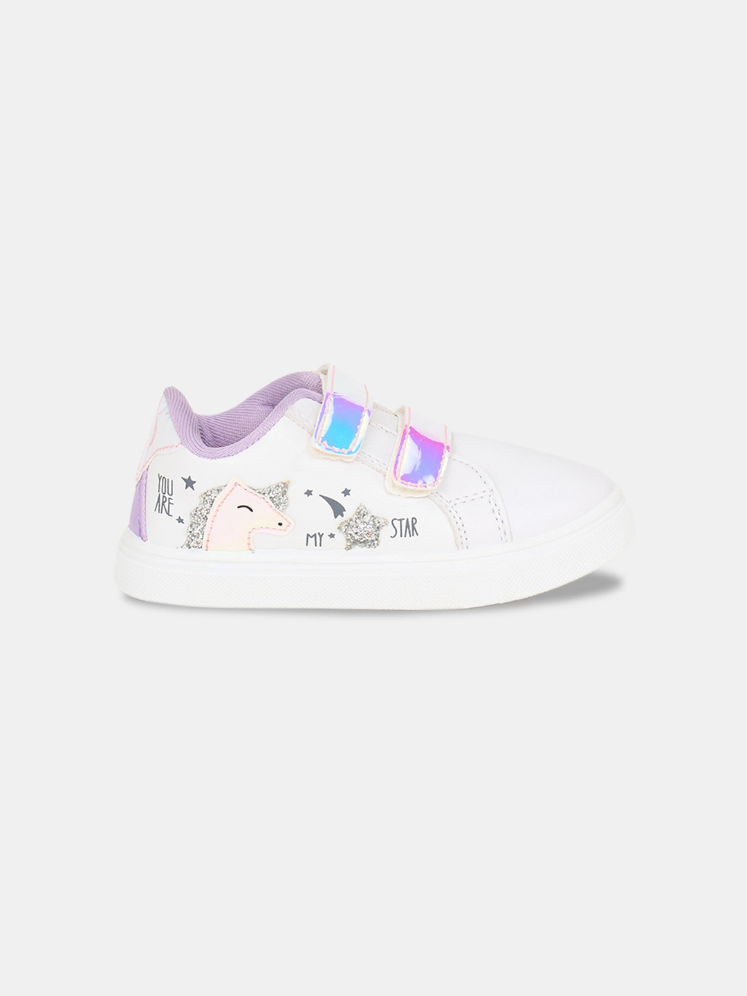 Add excitement and fun to your child's footwear closet. These shoes feature a classic design with velcro straps, iridescent details, cute artwork and a solid outsole. Constructed from premium quality materials that are super comfy, lightweight and offer excellent grip.