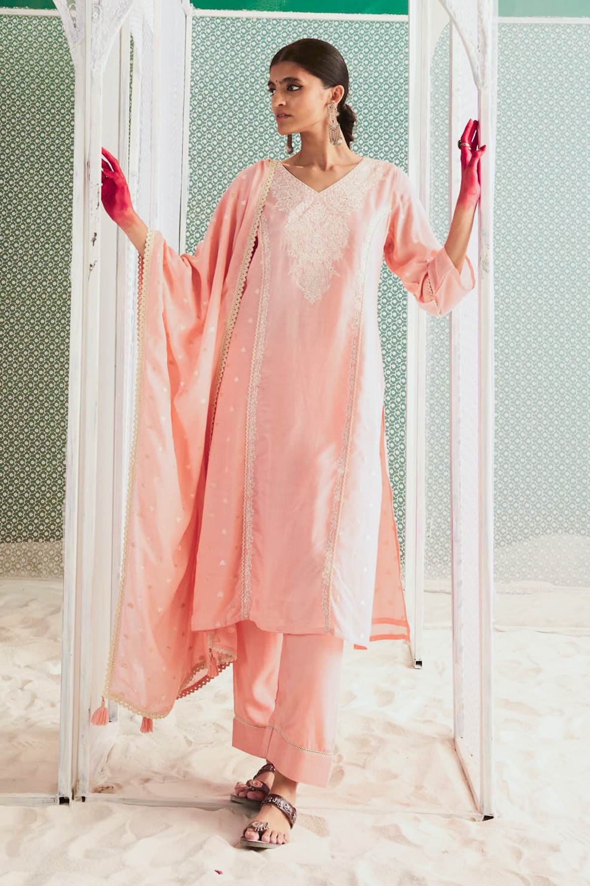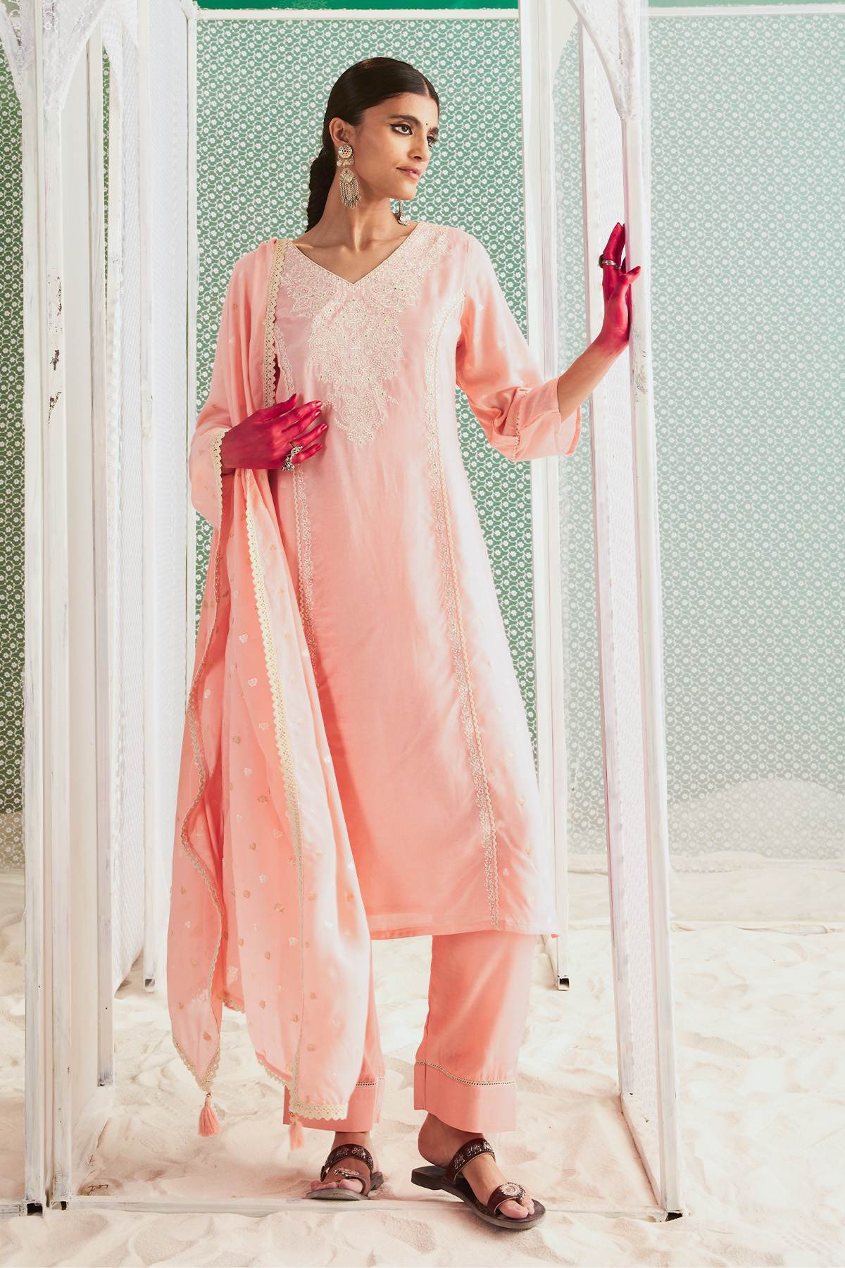 Home/Kurta Sets/Sabhyata/peach embroidered straight kurta set