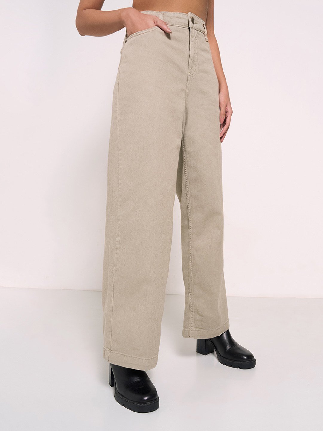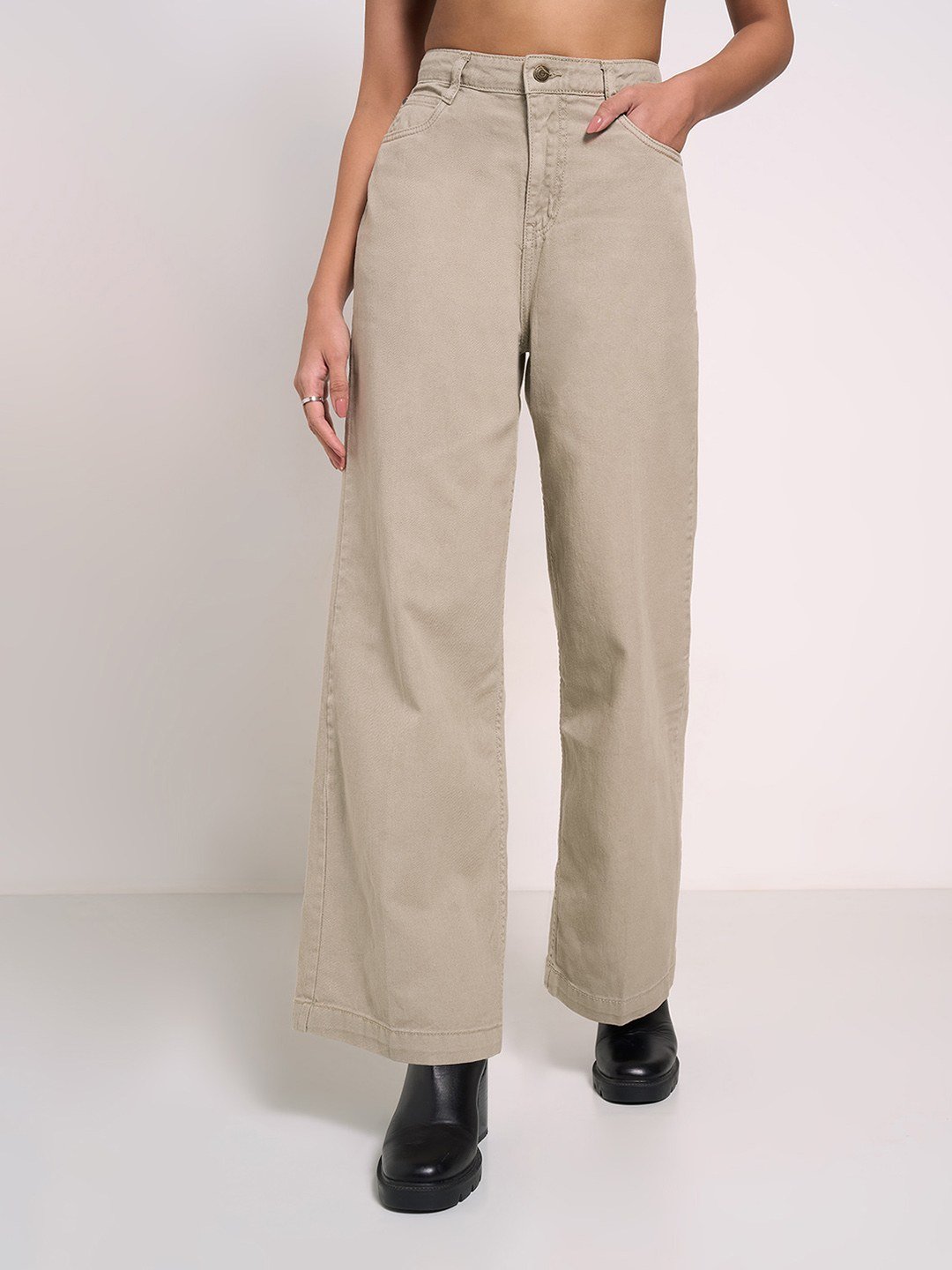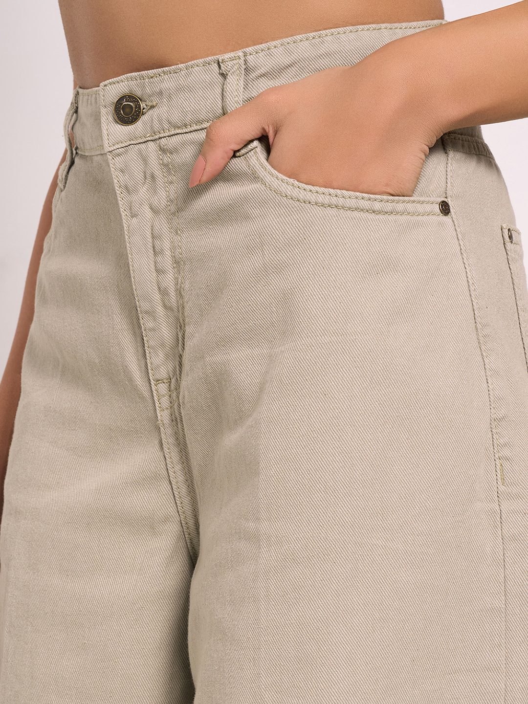 Say yes to the latest trends. These jeans have a front opening, multiple pockets and a flared silhouette in a neutral shade. Made of high-quality denim fabric that will elevate your everyday look and comfort.