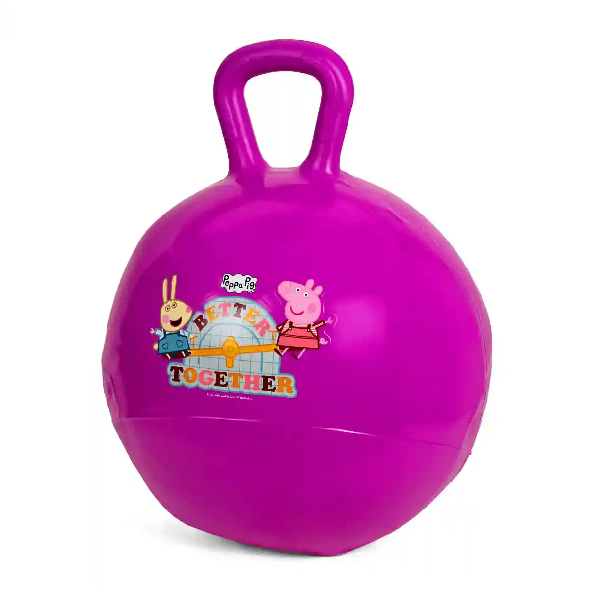 The Peppa Pig Hopper Ball is an exciting addition to any child's playtime. This purple hopper ball features adorable Peppa Pig graphics, bringing the beloved character to life. Designed for children aged 3 and above, it encourages active play and helps develop balance and coordination skills. Made from durable and child-safe materials, it provides endless hours of bouncy fun indoors or outdoors, making it a delightful choice for young Peppa Pig fans.