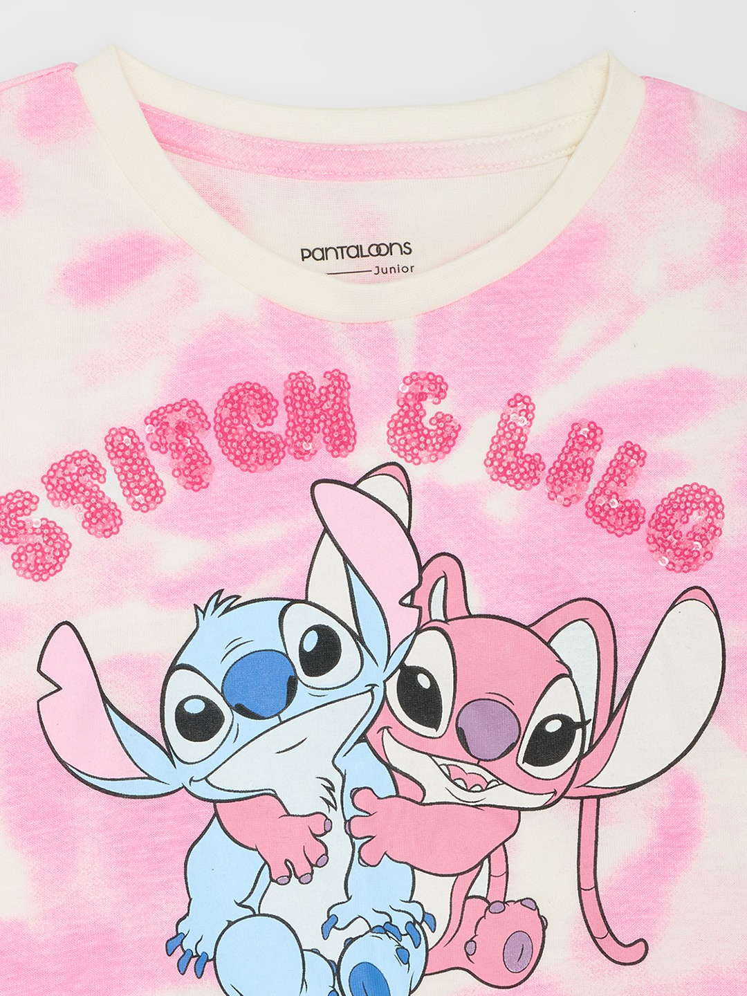 Home/T-Shirts/Pantaloons Junior/pink acid wash lilo & stitch t-shirt with tie-up hem