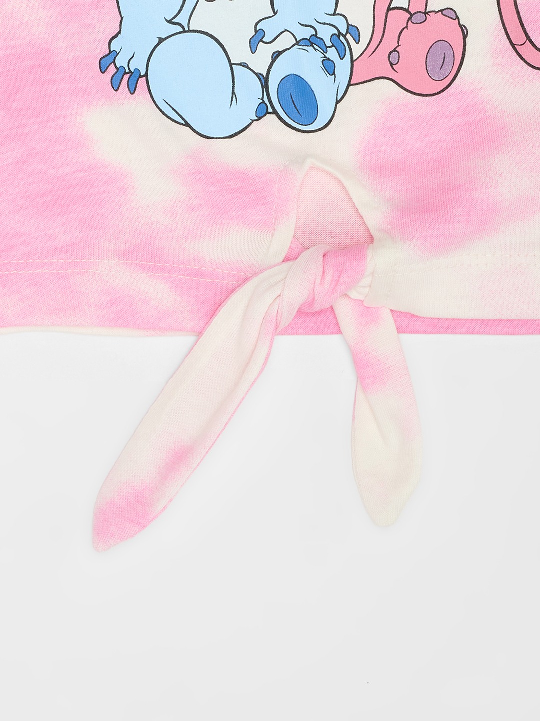 Pink Acid Wash Lilo & Stitch T-Shirt with Tie-up Hem