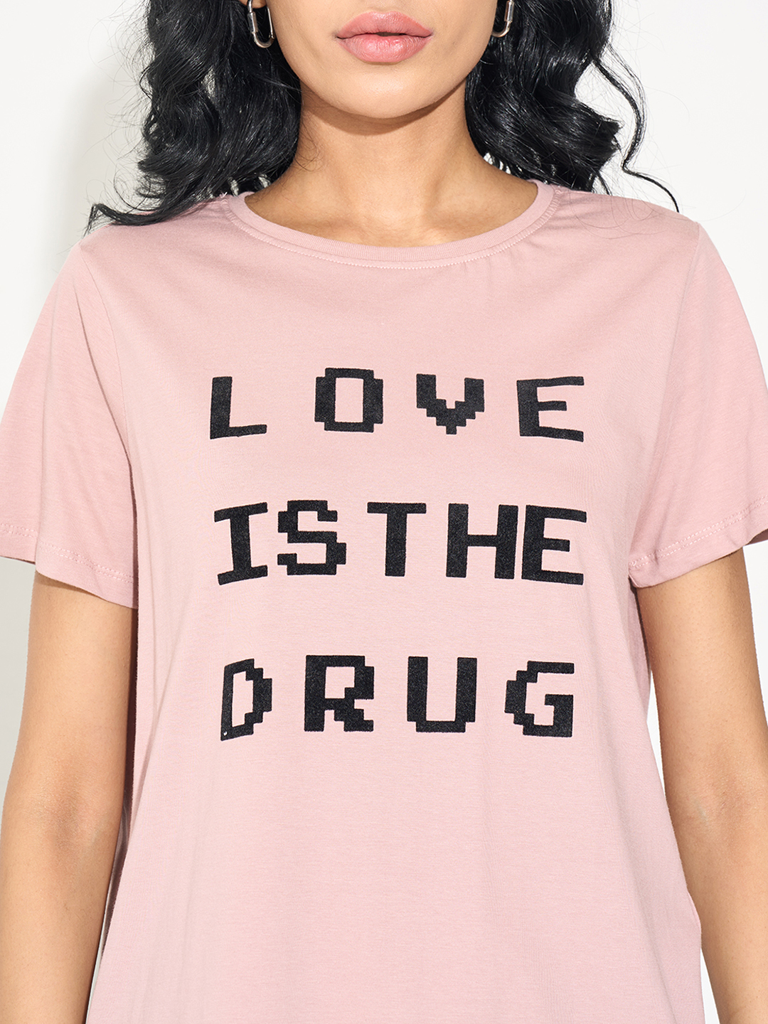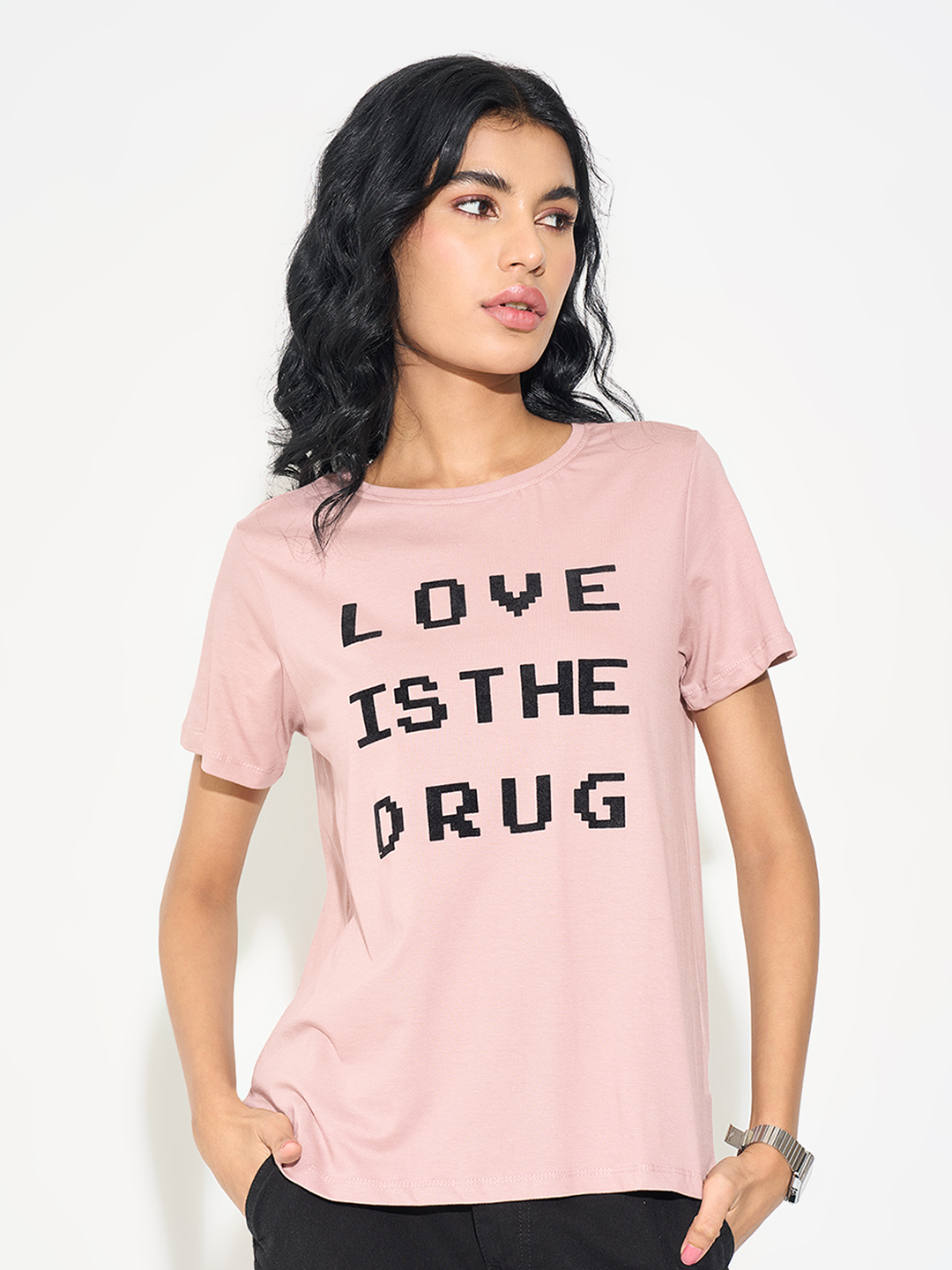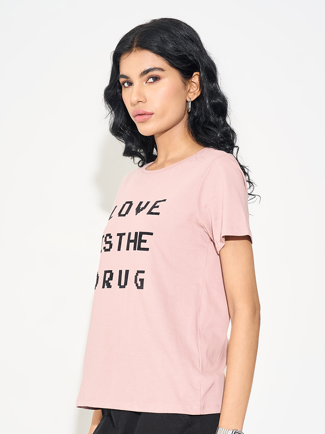 Home/T-Shirts/People/pink slogan graphic t-shirt
