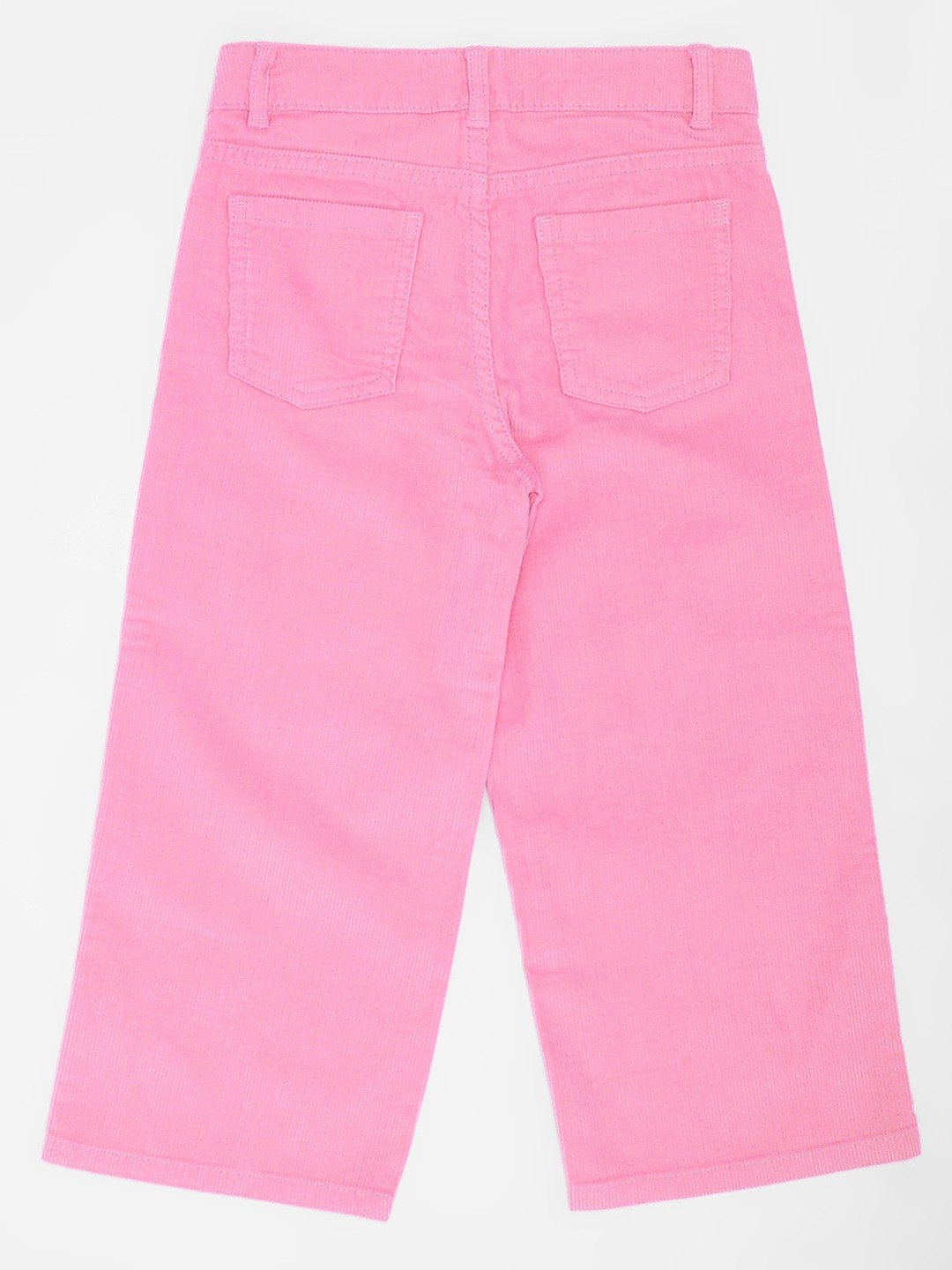 Home/Trousers/Pantaloons Junior/pink solid corduroy wide leg trousers