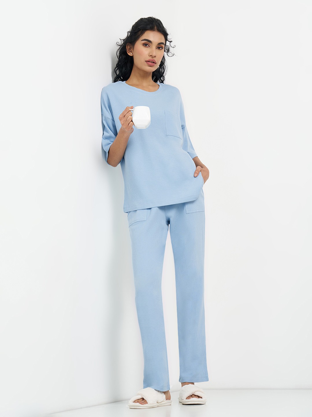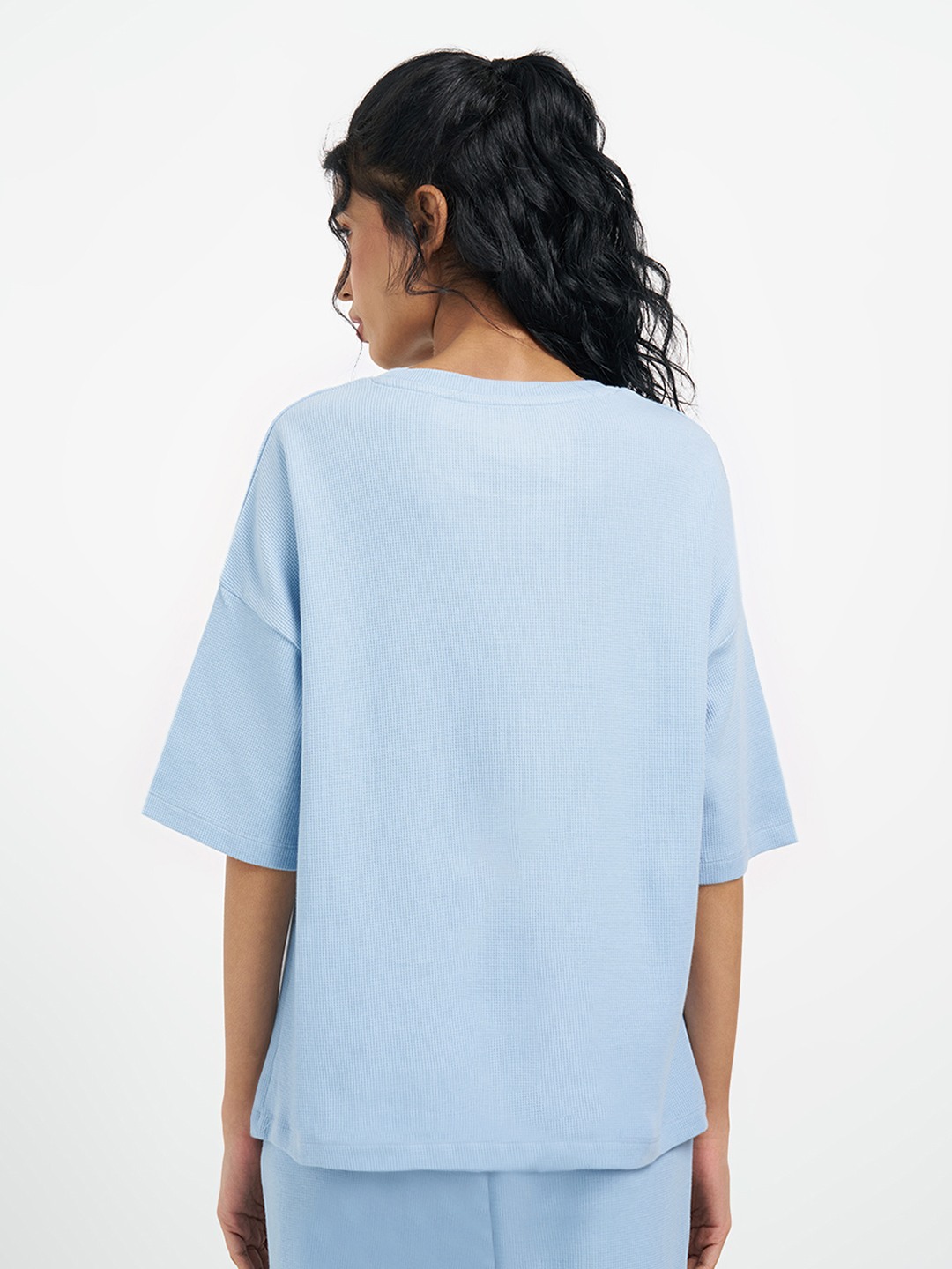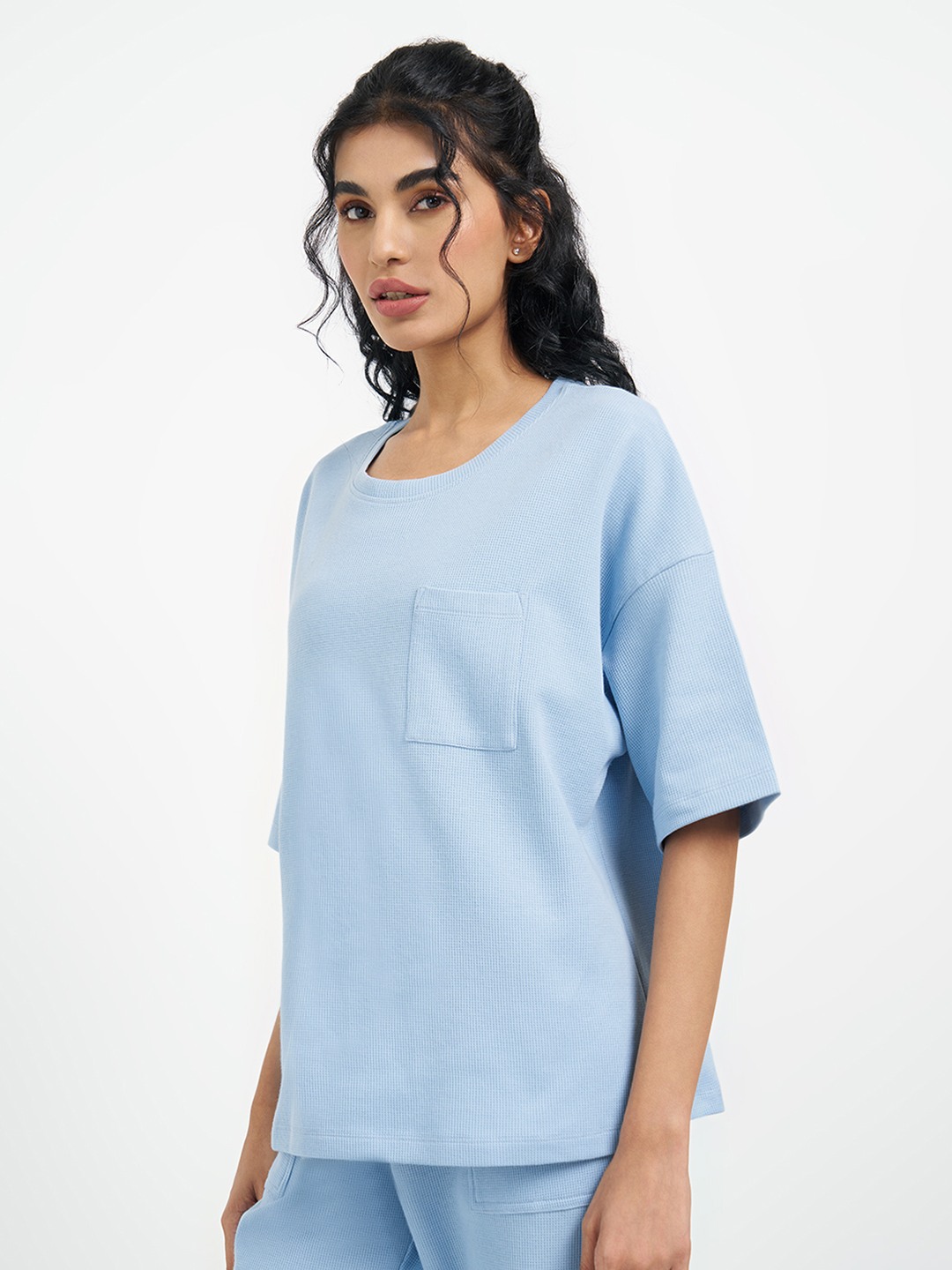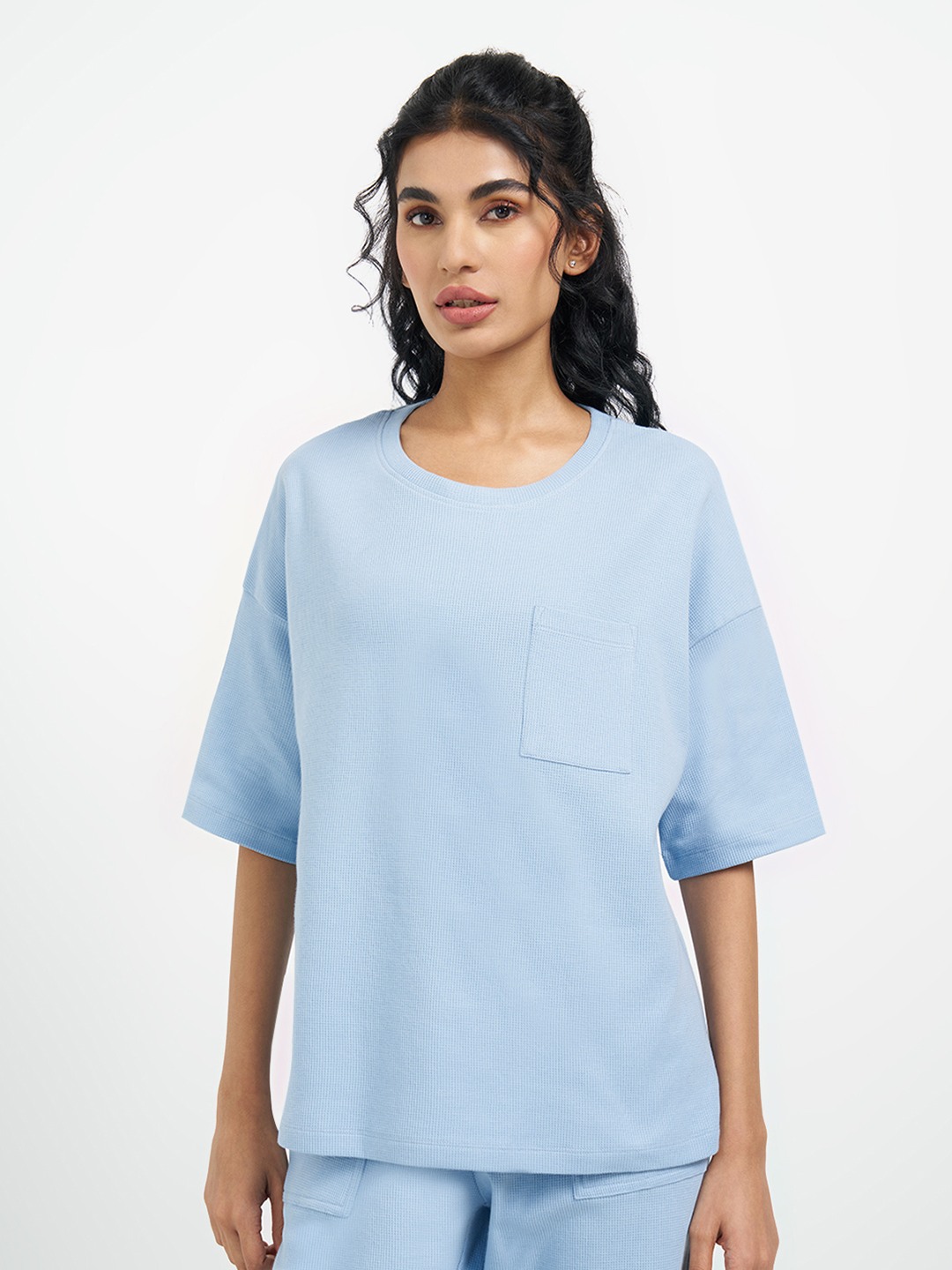 Quiet, no-fuss comfort for nights when less feels just right. Cut in an oversized silhouette with a round neckline, dropped half sleeves and a clean chest pocket that keeps the look pared back. Crafted from a soft, breathable textured knit that stays easy and relaxed through long lounging and sleep hours.