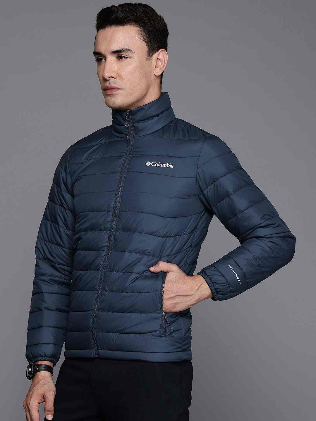 Men Navy Blue Powder Lite II Omni Heat Jacket