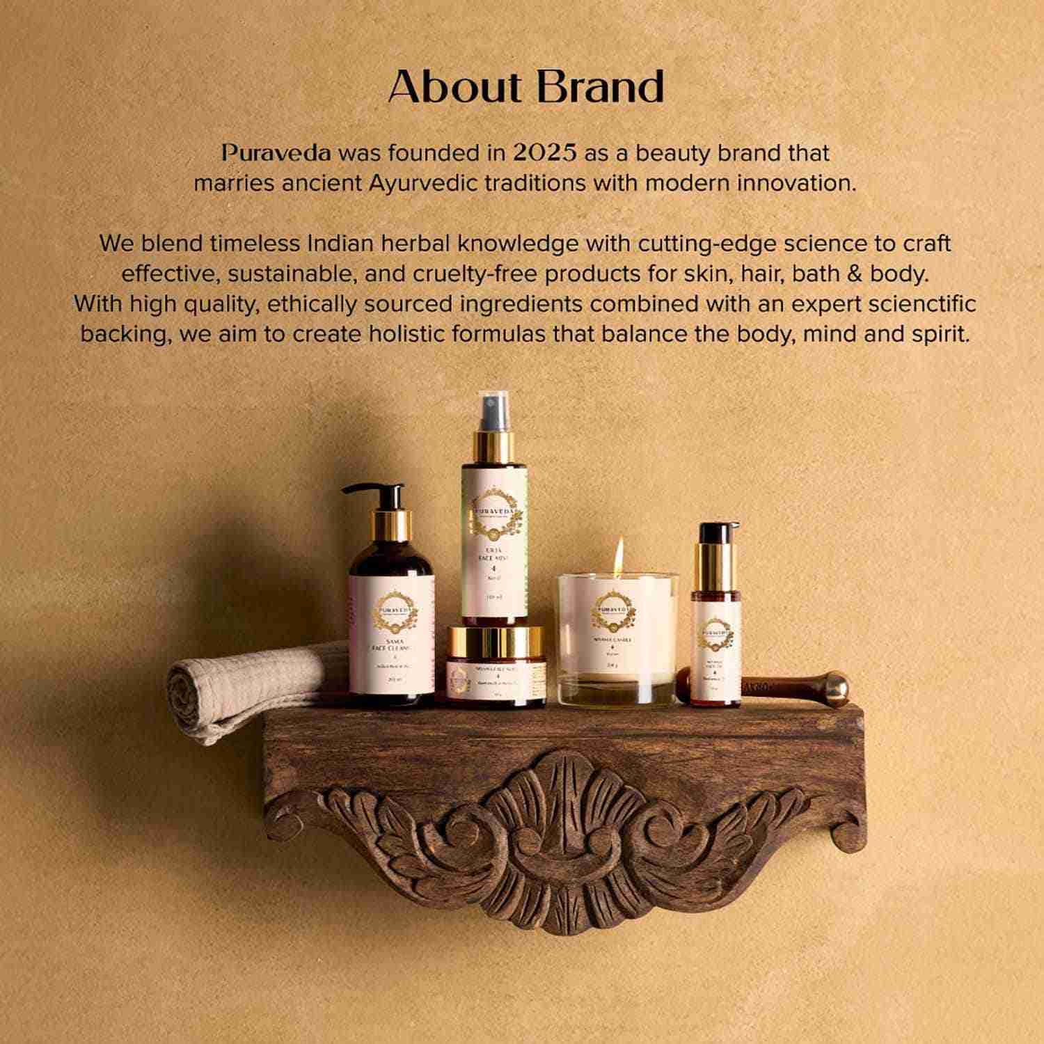 Puraveda, founded in 2025, offers progressive Ayurvedic solutions for skin, hair, bath, and body marrying ancient wisdom with modern innovations. Puraveda blends timeless Indian Ayurvedic knowledge with contemporary scientific backing. These formulations are holistic, highly effective, sustainable, and cruelty-free. From unique ingredients to soothing rituals, our carefully curated ranges invite you to experience the transformative power of Ayurveda, reimagined for today's world.
