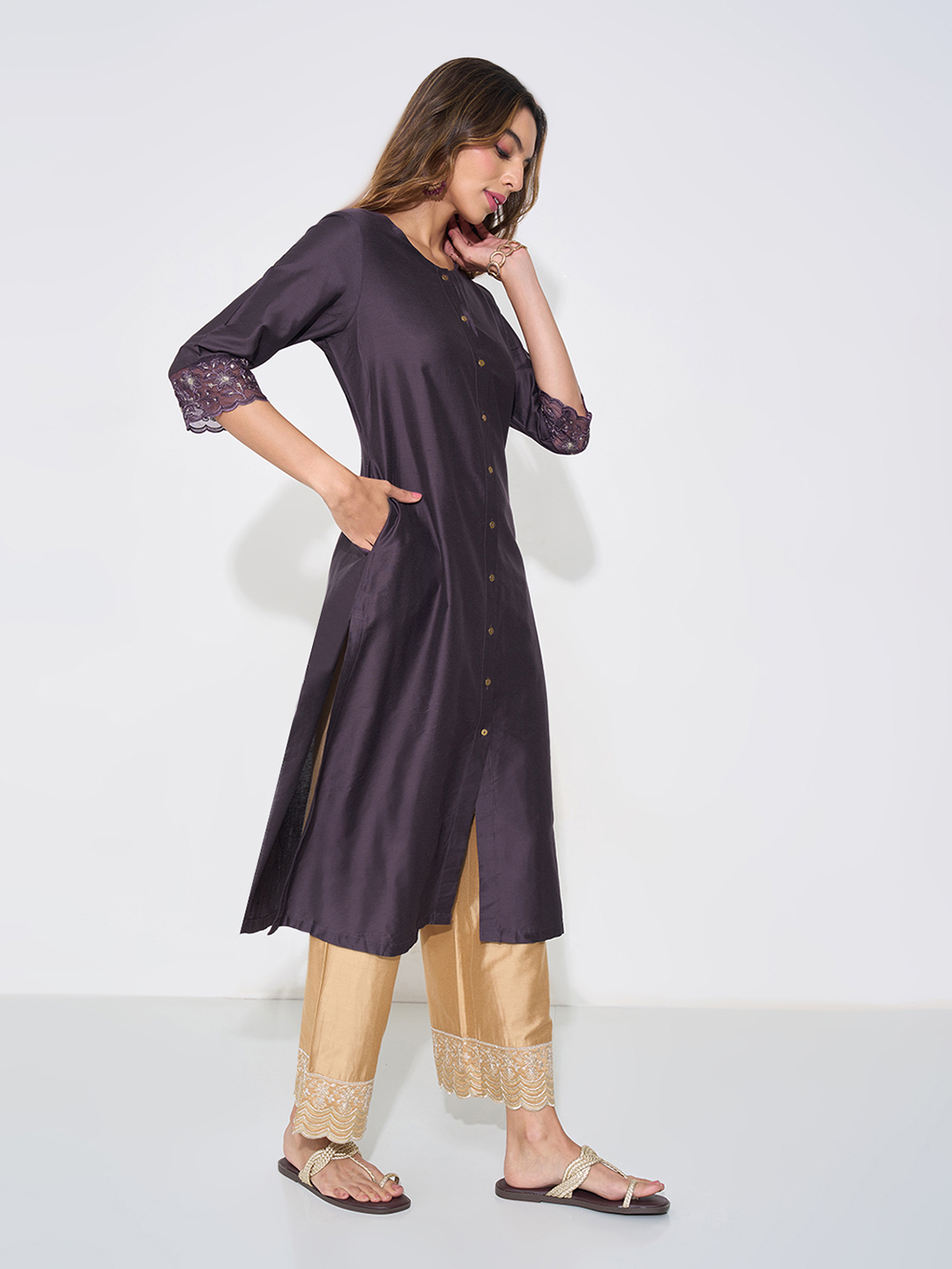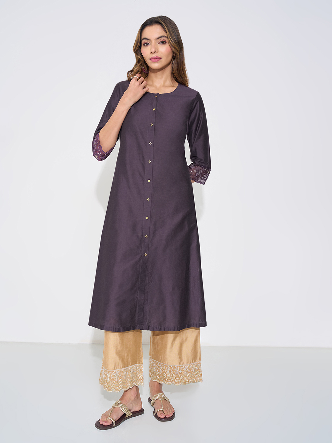 Home/Kurtas/RANGMANCH by Pantaloons/purple button-down festive kurta