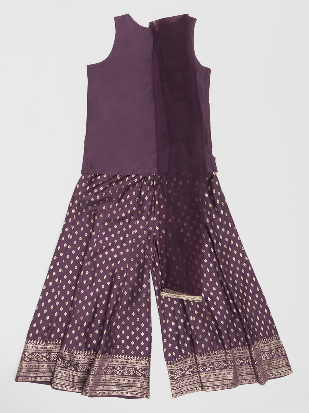 Purple Embroidered Kurta Foil Print Palazzos & Sheer Dupatta Festive Set