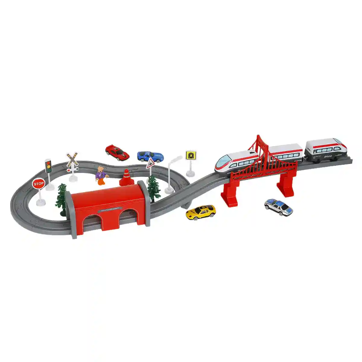 The Ralleyz Fast Speed City Train Set is an exciting toy that brings the world of trains to young children's playtime. Designed for kids aged 3 years and above, this battery-operated model train set offers a thrilling and interactive experience with its fast speed and vibrant design. The city train in the set runs on batteries, providing a realistic and dynamic train experience. With its fast speed and smooth movement, children can watch the train zip around the self-assemble track, simulating the action of a real city train journey. The train's performance adds an element of excitement and immersion to the playtime. The train set includes a self-assemble track that children can easily put together to create their own city railway system. This feature promotes creativity and problem-solving skills as kids explore different track configurations and build their own cityscape. They can experiment with various layouts, curves, and straight tracks to design a unique and engaging play environment that resembles a bustling city. The Ralleyz Fast Speed City Train Set features a vibrant and multicolored design that captures children's attention. The train and track components are visually appealing, stimulating children's imagination and encouraging interactive play. The bright colors add an element of visual excitement and enhance the overall play experience. Operating the train set is easy and user-friendly. Kids can control the train's speed and movement using simple controls, giving them full control over the train's actions. This fosters a sense of independence and empowers children to create their own train adventures within the cityscape they have built. Safety is a top priority when designing toys for young children. The Ralleyz Fast Speed City Train Set is specifically designed with their age group in mind, ensuring it is safe and suitable for kids aged 3 years and above. The components are made from durable materials, and the train set adheres to strict safety standards to provide a secure and enjoyable play experience. In summary, the Ralleyz Fast Speed City Train Set is an engaging and interactive toy for kids aged 3 years and above. With its battery-operated city train, self-assemble track, vibrant design, ease of use, and age-appropriate features, it offers an immersive play experience for young train enthusiasts. Whether they are watching the train speed through the city, building their own railway system, or engaging in imaginative play scenarios, children can have hours of fun and educational play with this multicolored train set.