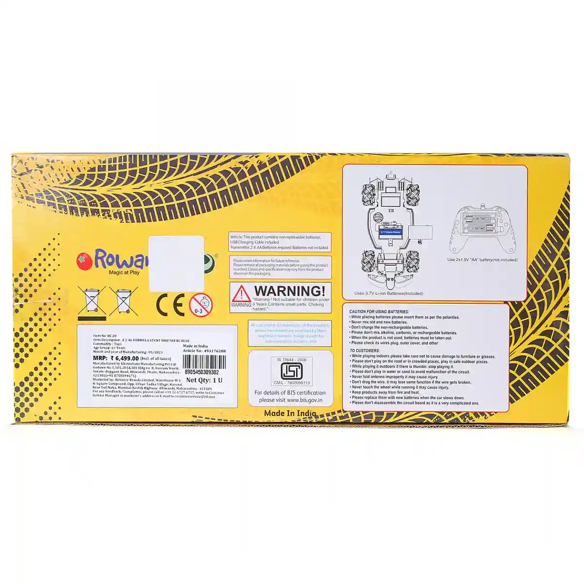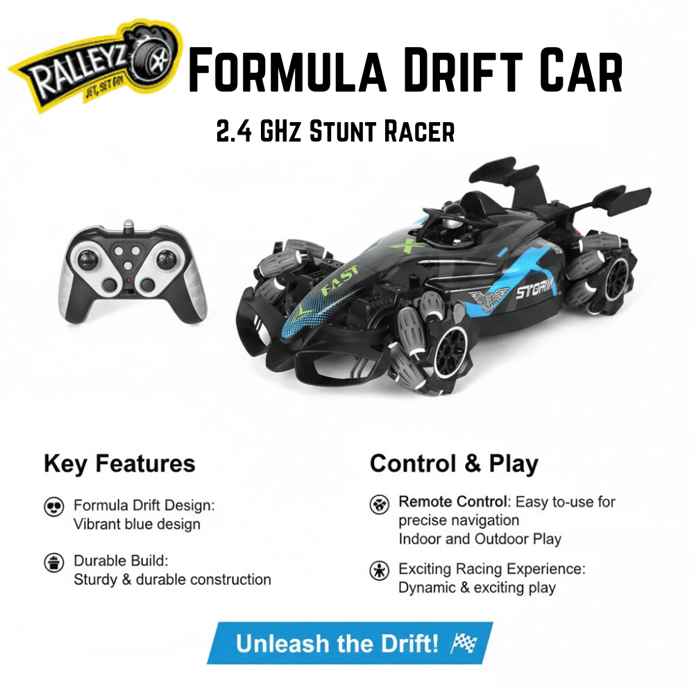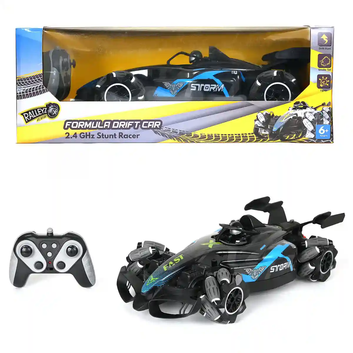 Experience the excitement of racing with the Ralleyz Formula Drift Car, a remote control car designed for kids aged 6 and above. In a striking blue color, this car brings the thrill of Formula Drift racing to your fingertips. The car's design is not only visually appealing but also reflects the high-speed capabilities it possesses. With easy-to-use remote control, kids can navigate the car with precision, making it perfect for indoor and outdoor play. The Formula Drift Car is not just a toy; it's a gateway to developing hand-eye coordination and fostering a love for cars and racing. Get ready for endless hours of fun and adventure as you master the art of drifting with this exciting remote control car.