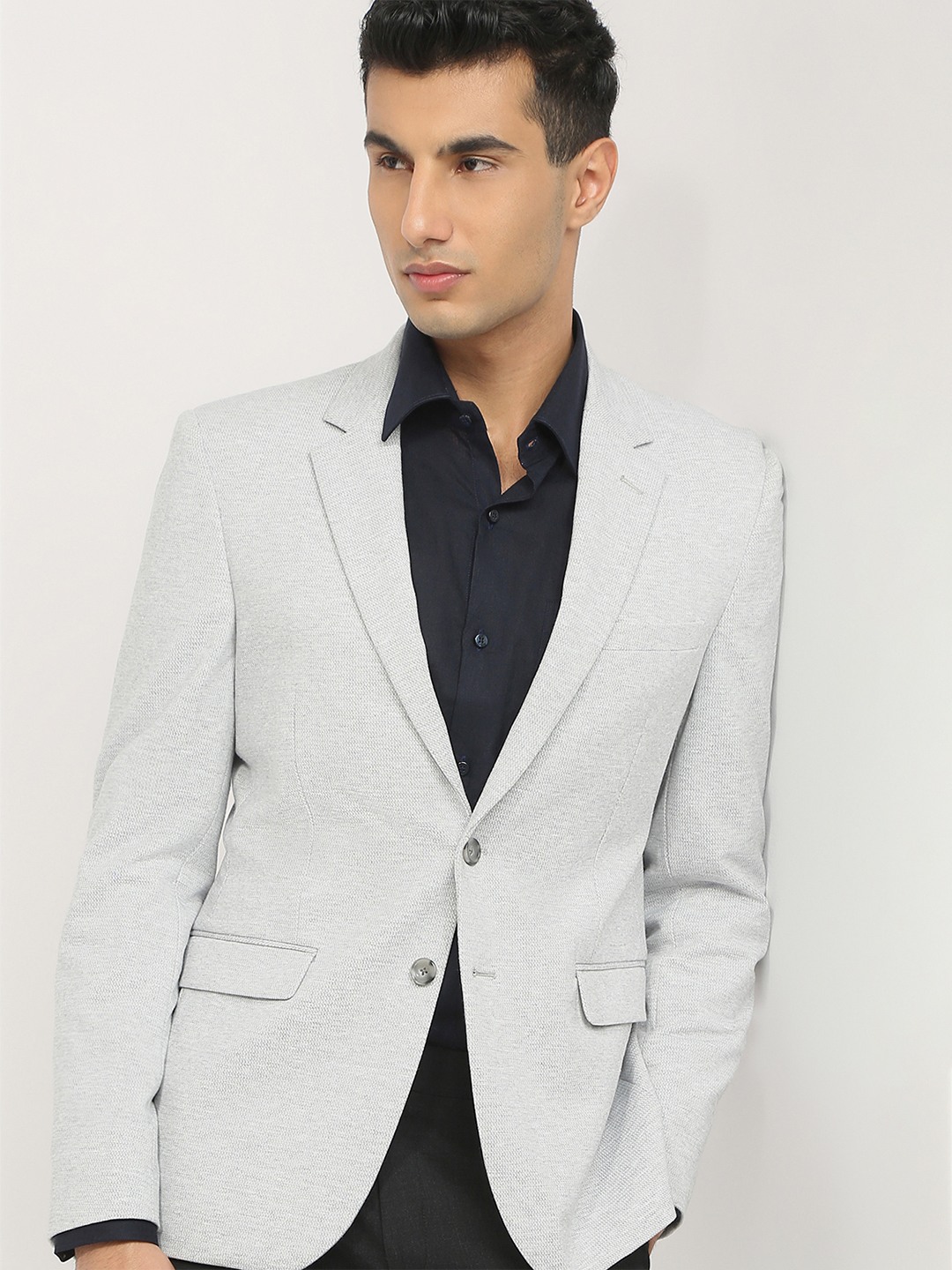 Home/Western Jackets/Raymond/mens slim fit knitted pattern rayon blend notch lapel full sleeve formal jacket