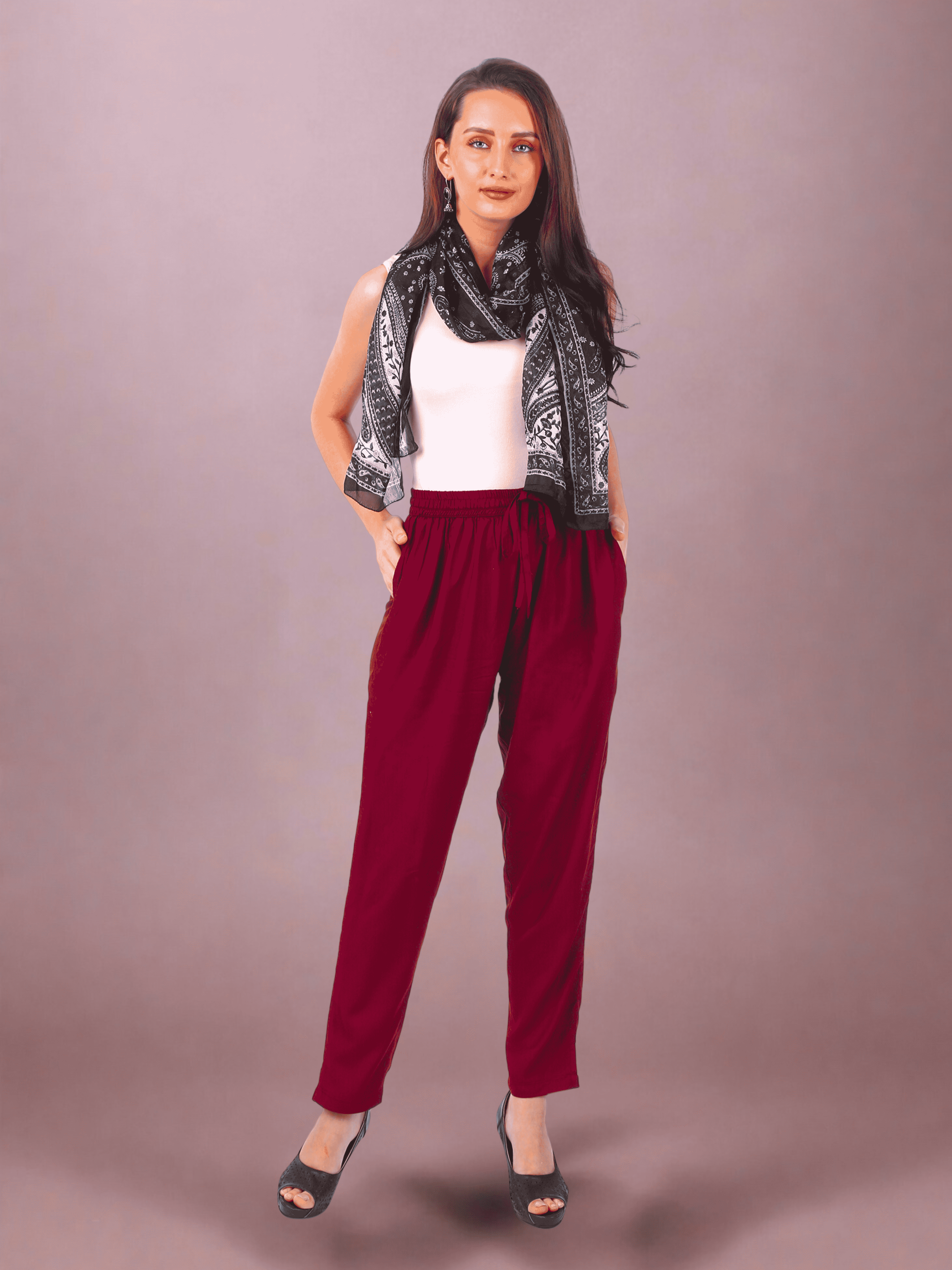 This pant is made from Rayon, treated with our signature wash to give a luxurious hand feel features pocket on both sides for easy comfort and storage for the customer. The elasticated waist band makes for a sung and comfortable fit on the waist. Made from light fabric suitable for the Indian summer.
