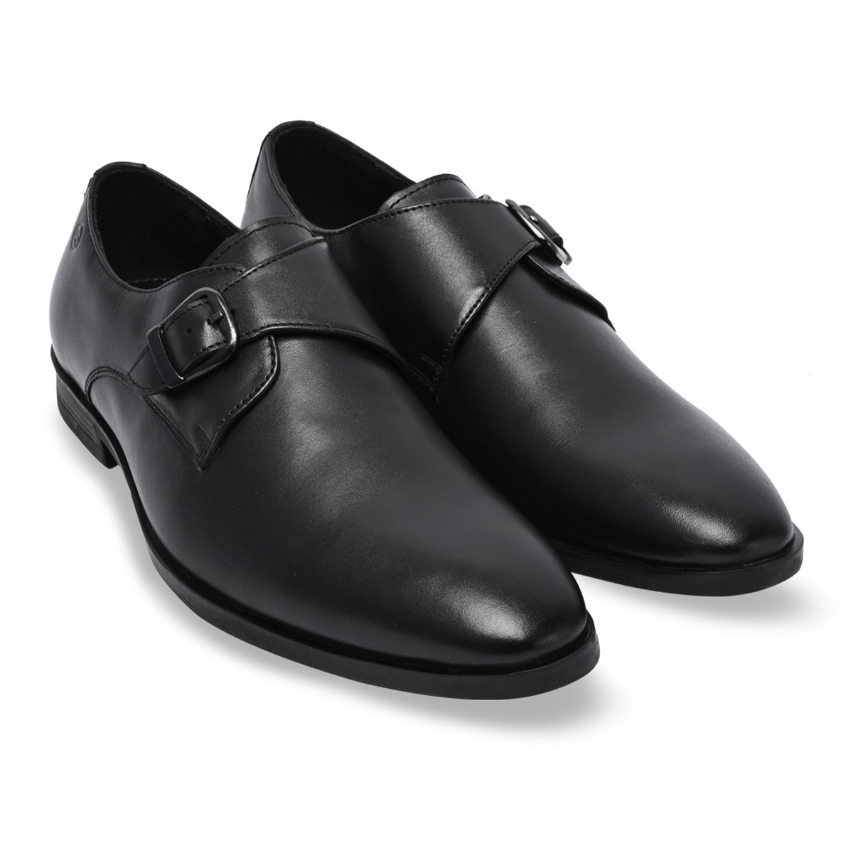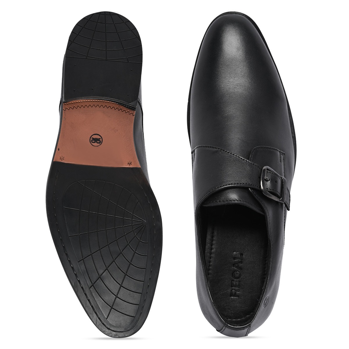Refined and sophisticated, these leather single monk strap shoes are a must-have for the modern gentleman. Designed at Regal Shoes with premium leather and a classic buckle closure, they exude elegance with every step. The cushioned footbed provides superior comfort, while the sleek design makes them ideal for formal events or stylish office wear. Pair them with tailored trousers or suits for an impeccable look.