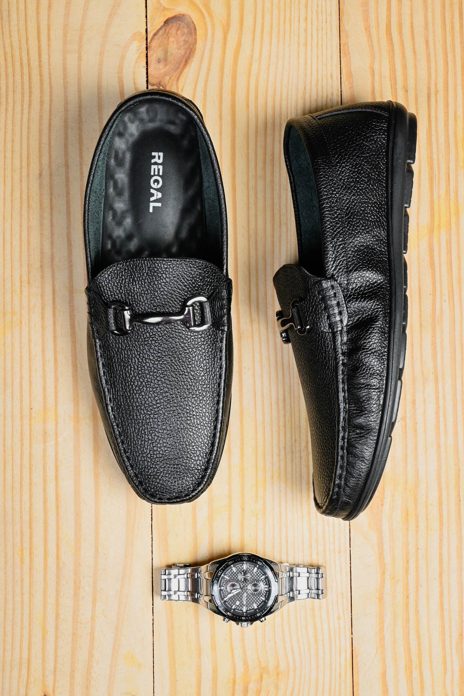 Regal black mens casual leather loafers