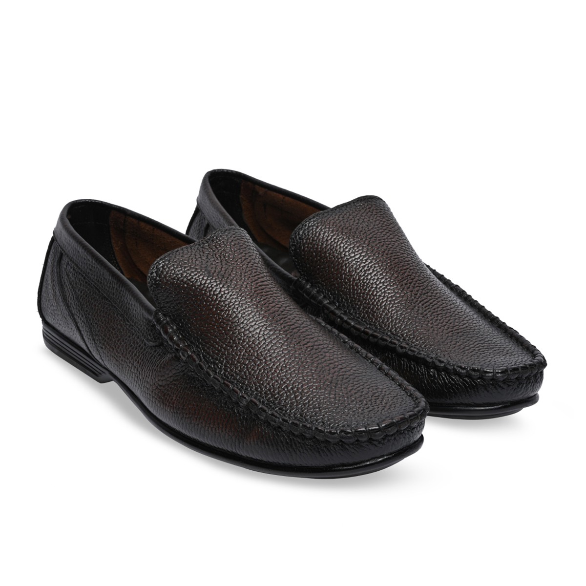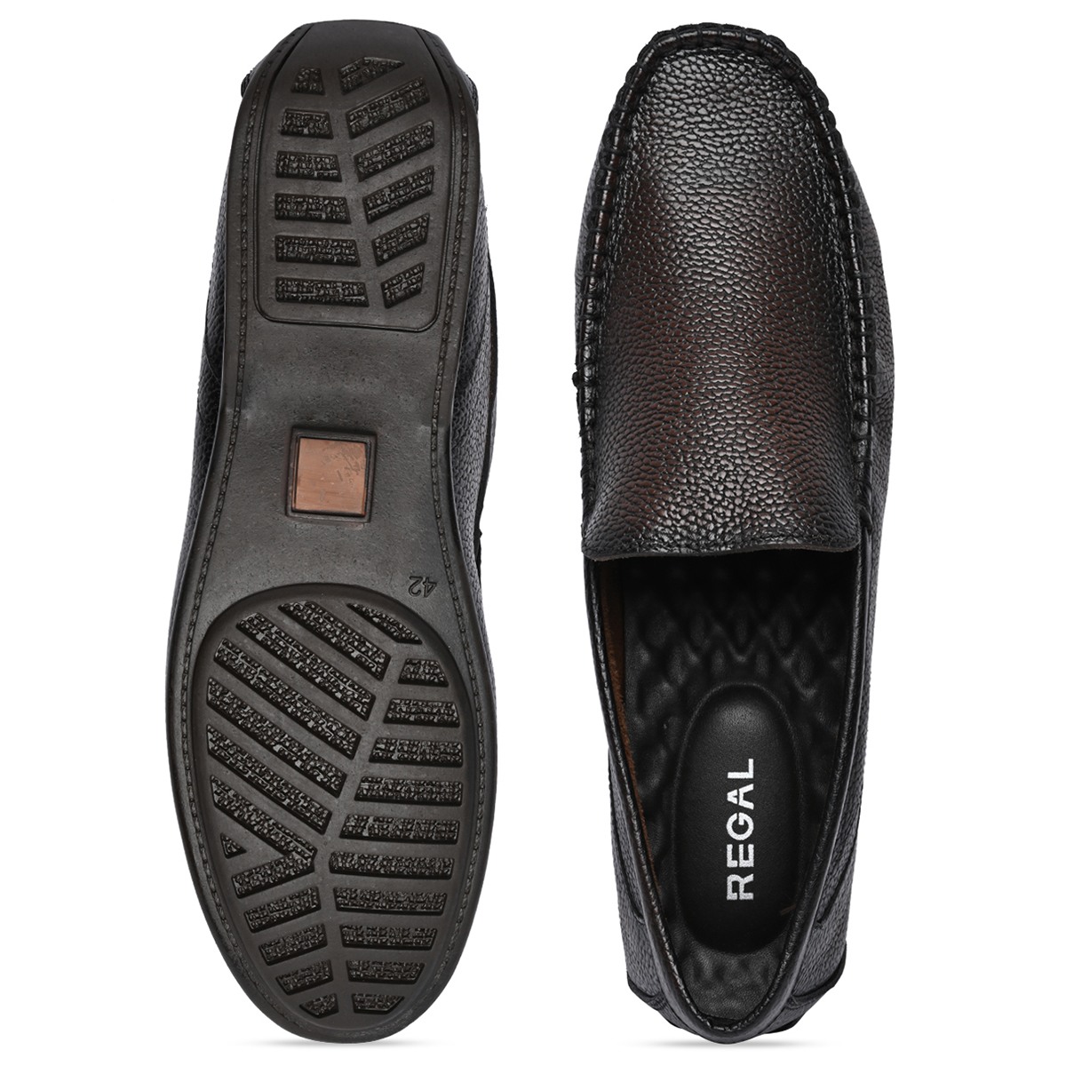Experience unmatched comfort and style with Regal Shoes men's leather driving loafers. Featuring a textured finish and rubber grip sole, these loafers are perfect for driving and casual outings. Pair them with chinos or linen pants for a laid-back yet stylish look.