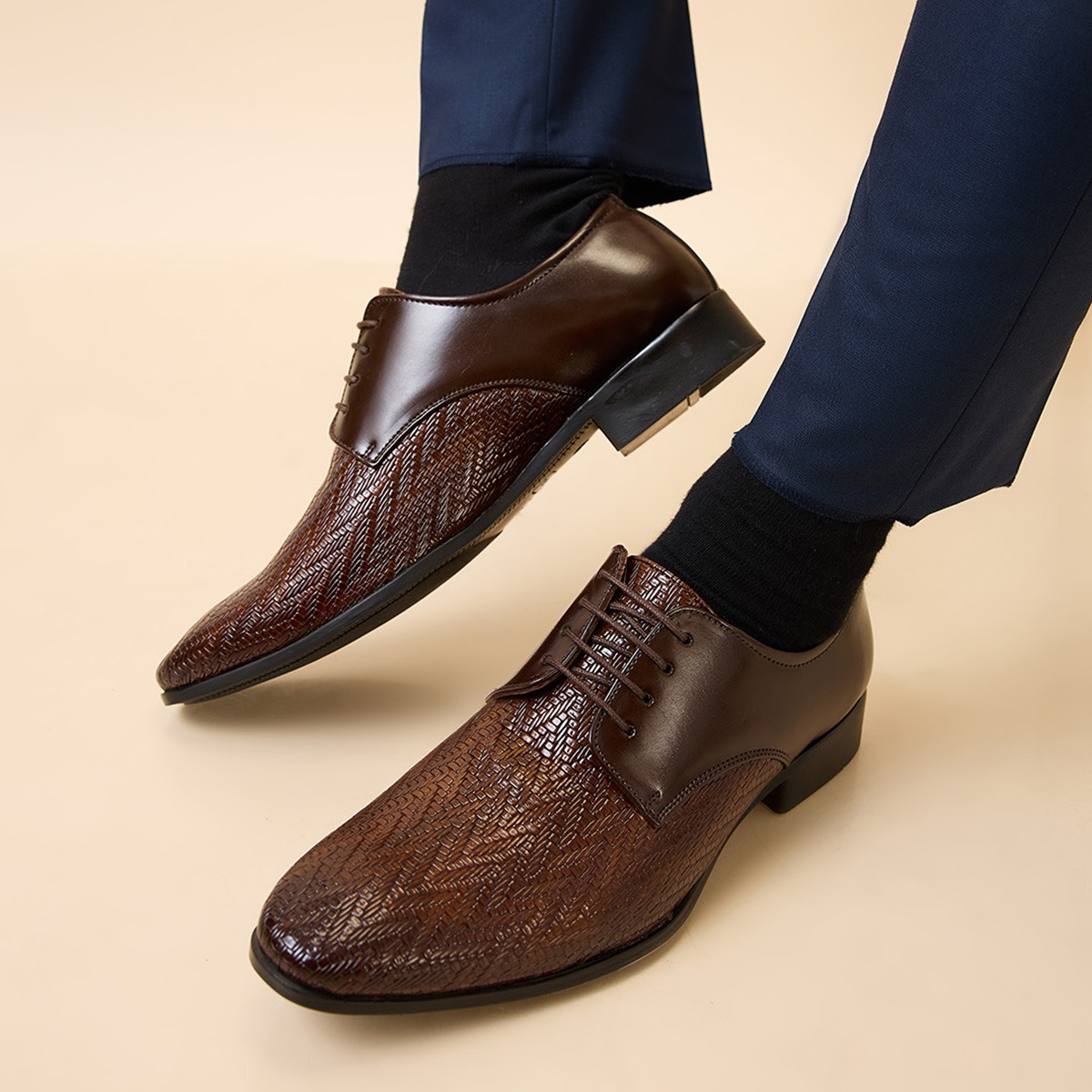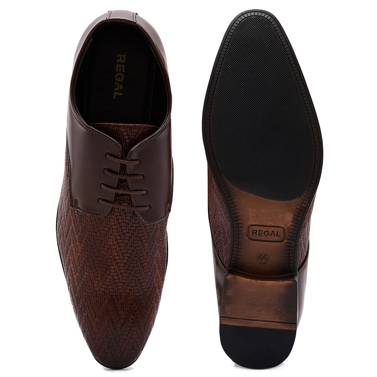 Achieve timeless elegance with Regal Shoes men's formal leather textured lace-ups. Crafted with premium leather and a sleek design, these shoes are perfect for boardrooms and formal occasions. Their durable sole and cushioned insole ensure all-day comfort.