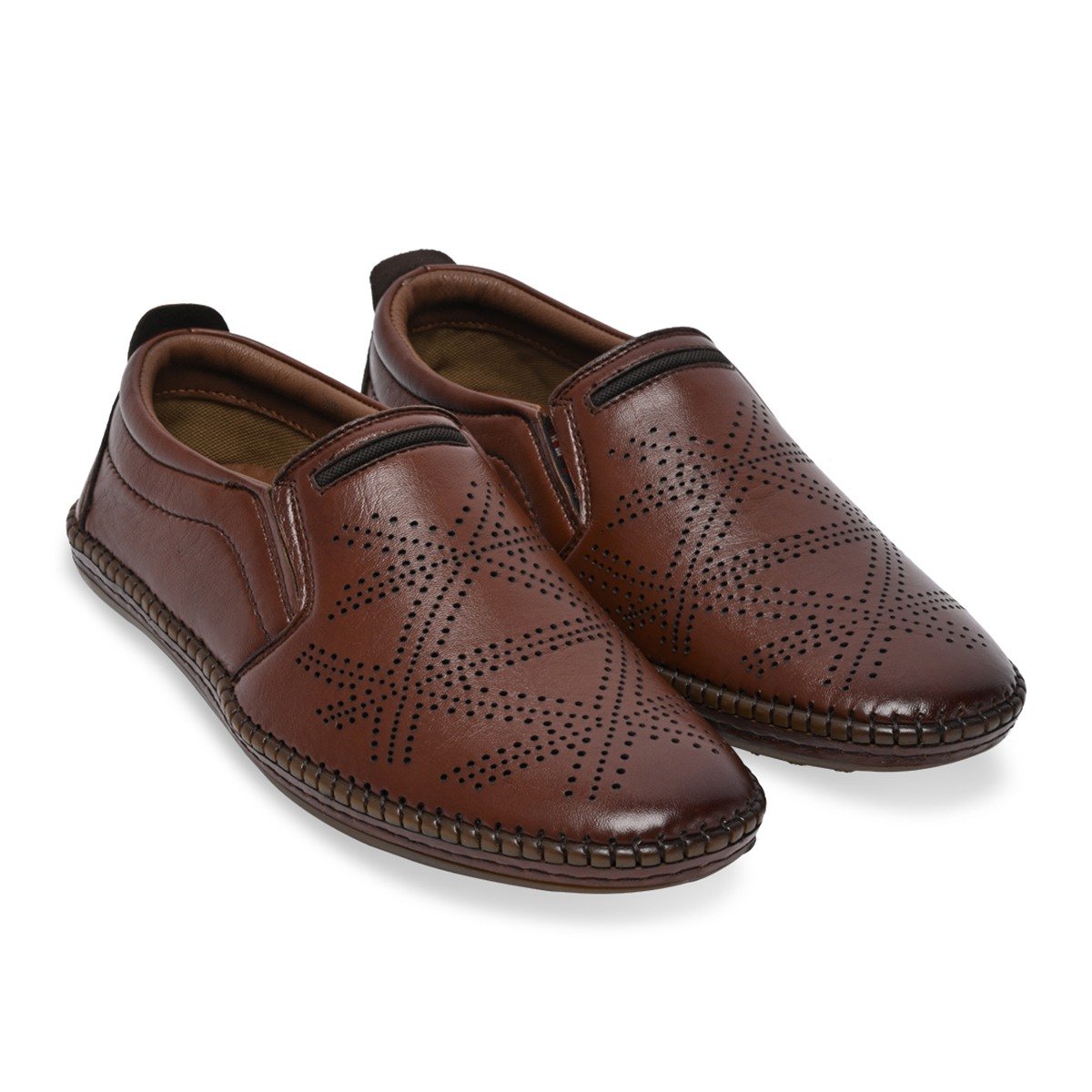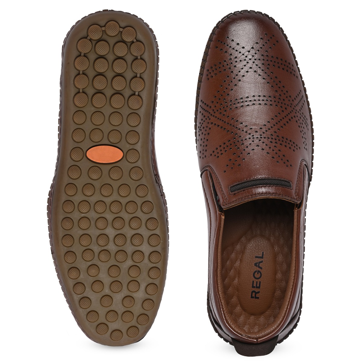 Step into effortless style with these casual laser-cut slip-ons for men by Regal Shoes. Crafted with breathable leather and a modern laser-cut design, these shoes offer all-day comfort and a sleek aesthetic. Perfect for casual outings, work, or travel, these slip-ons are versatile enough to pair with chinos, jeans, or even shorts. The flexible cushioned sole ensures durability, while the slip-on style makes them a practical choice for men on the go.