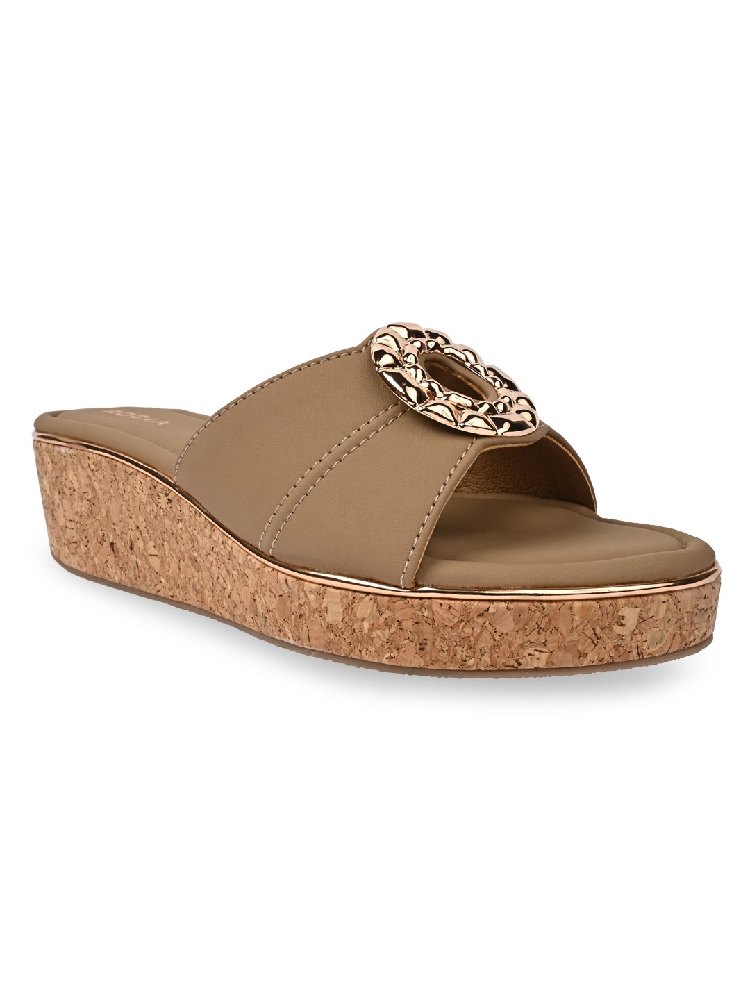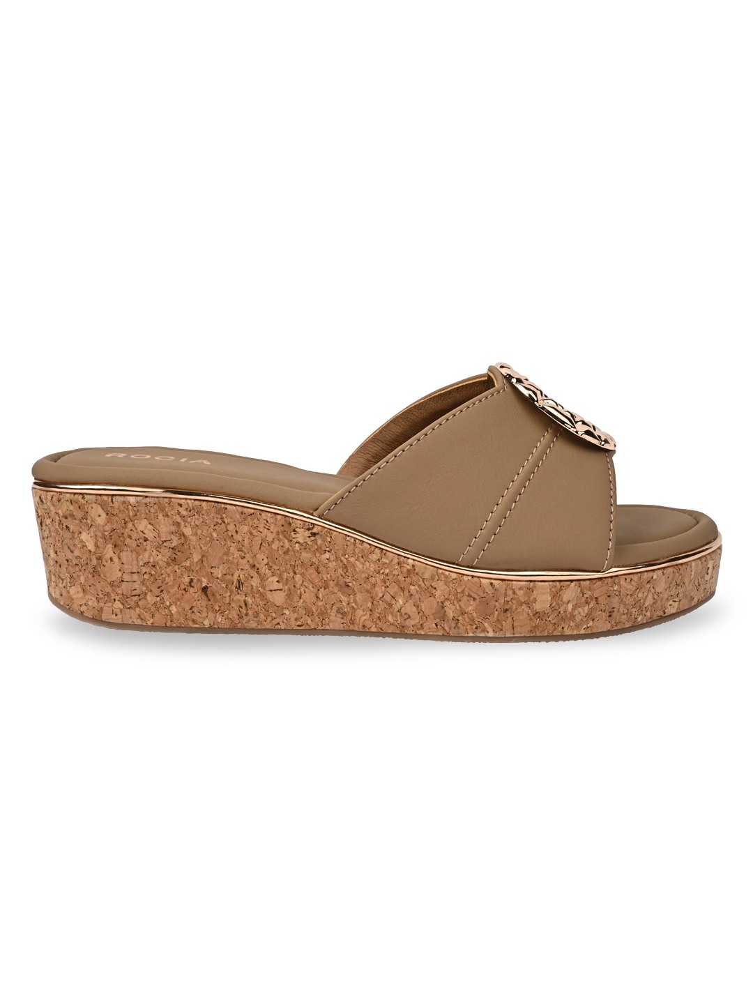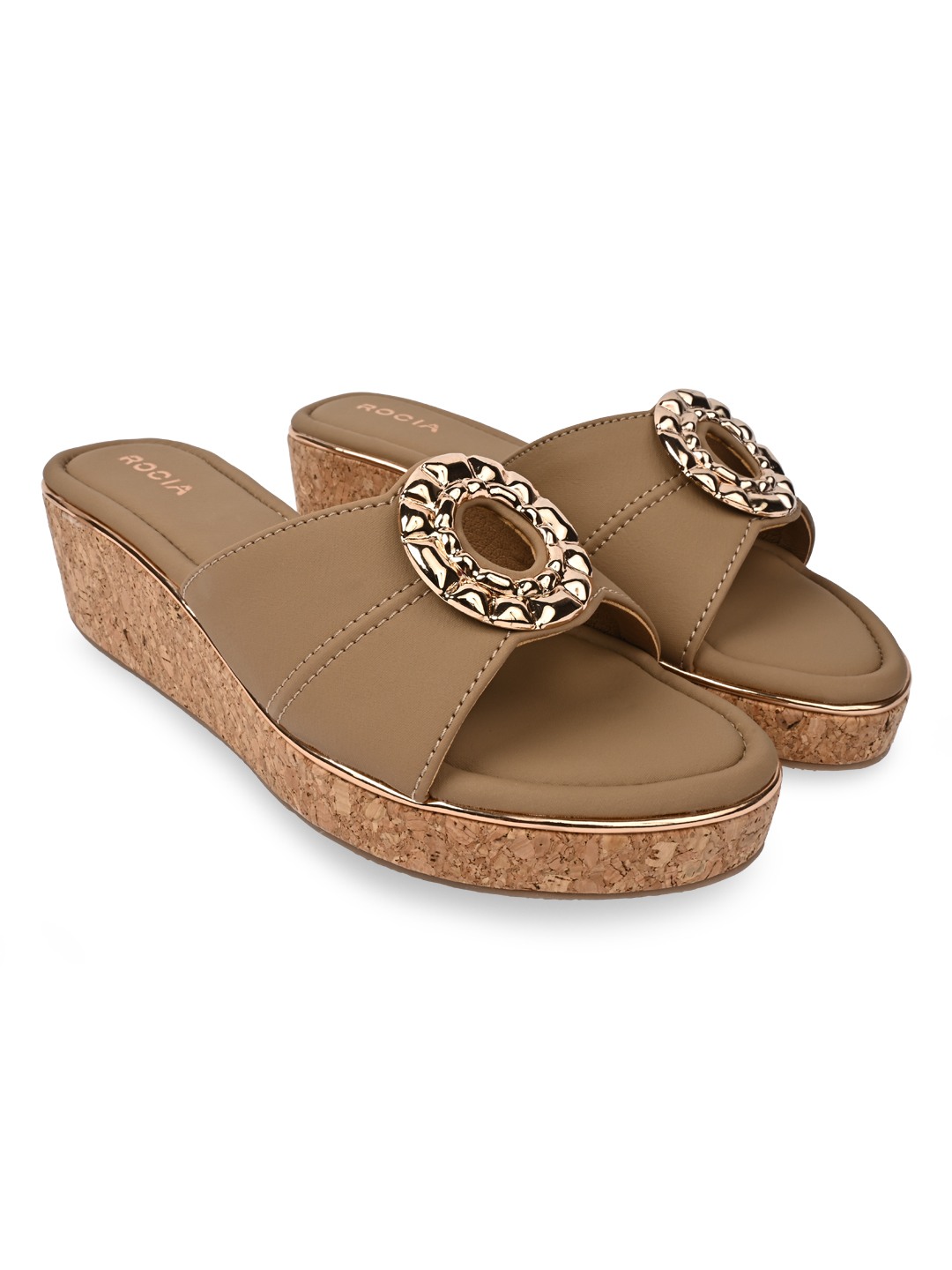 Rocia by Regal Shoes Casual Cork Covered Wedges combine comfort with a modern silhouette. The open-toe slip-on design allows easy wear and versatility. Elevated on a 2-inch wedge heel, they provide subtle height with a relaxed feel. Perfect for casual summer outings and laid-back fashion looks.