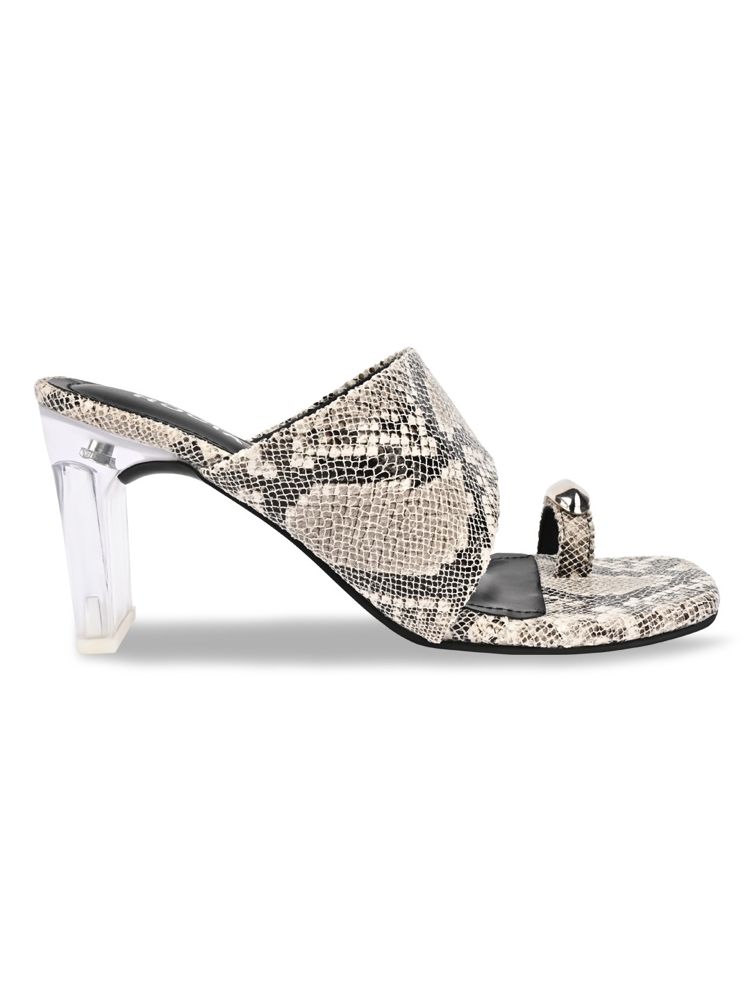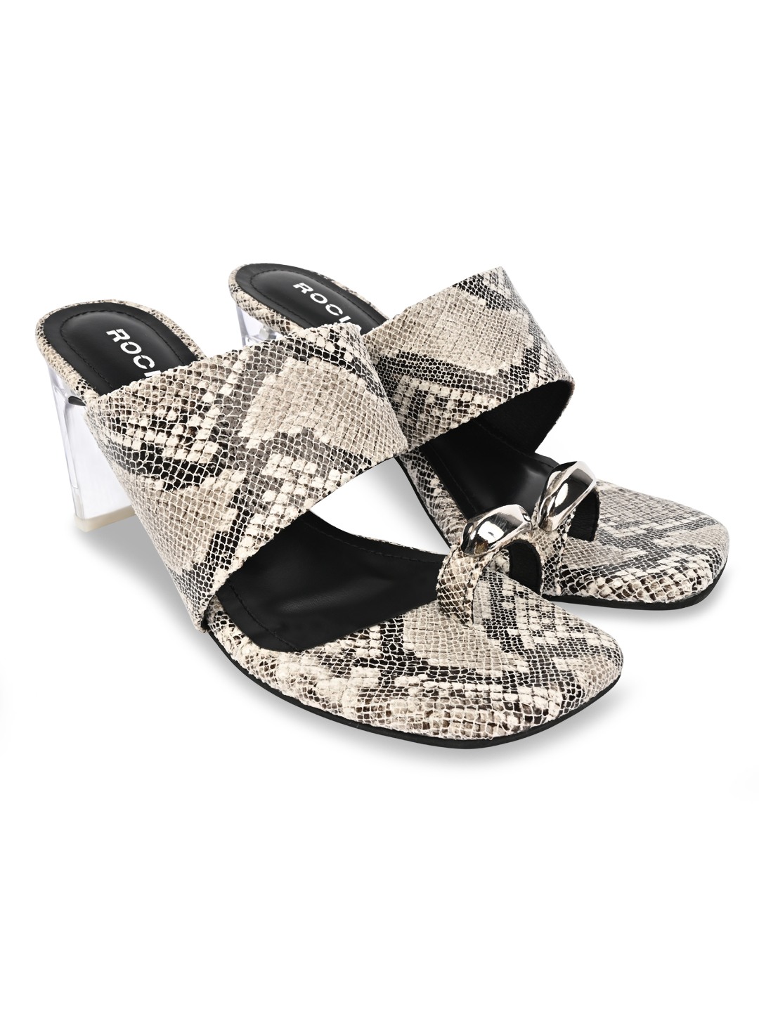 Featuring a striking snake print design, Rocia by Regal Shoes One Toe Acrylic Heel Sandals bring edgy sophistication to your wardrobe. The sleek slip-on style keeps them effortless and modern. Resting on a 3-inch acrylic block heel, they offer standout elevation with balanced comfort. Ideal for fashion-forward casual looks.