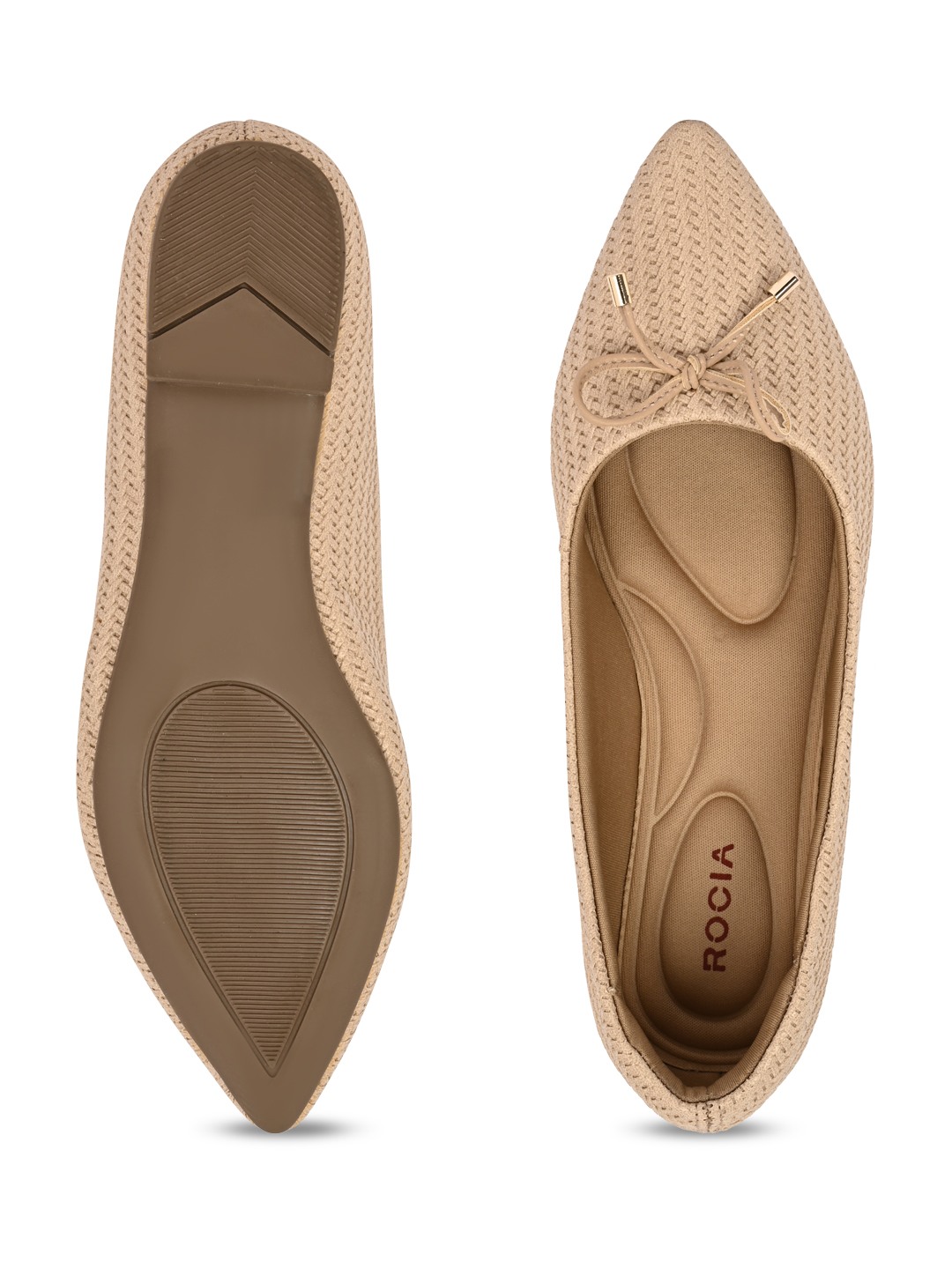 Bringing refined elegance to everyday footwear, Rocia by Regal Shoes Woven Pointy Ballerinas feature a closed-toe pointed silhouette that adds a polished, professional touch. Designed with a 1-inch flat heel, they ensure comfort throughout long workdays. Ideal for workwear, smart casual outfits, and everyday sophistication.